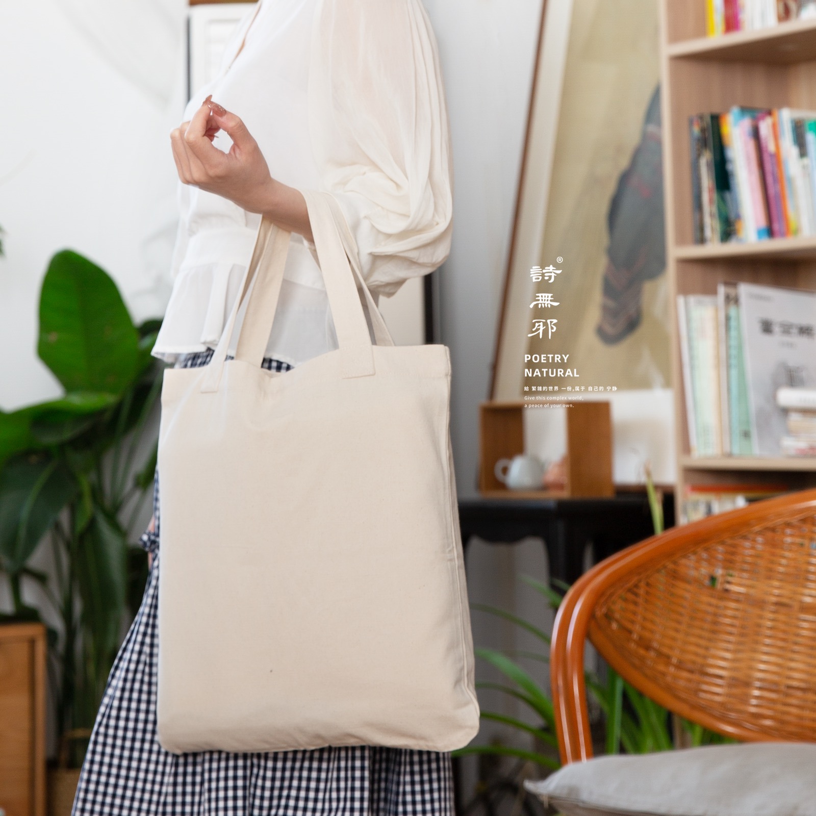 Poetry Innocence Literature Room Schoolchildren Book Bag Simple Canvas One Shoulder Handbag Pure Cotton Leisure Solid Color Student Literature and Art Forest Department