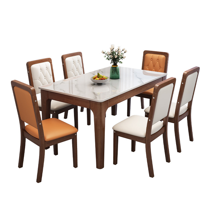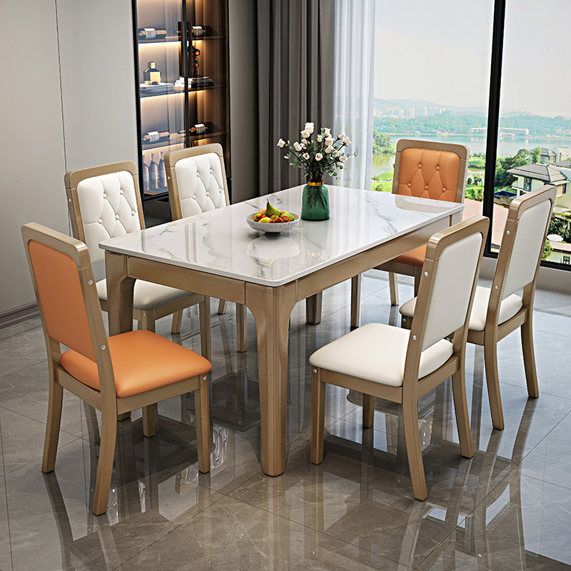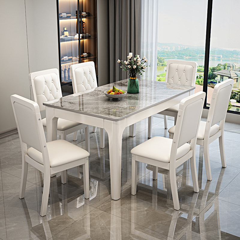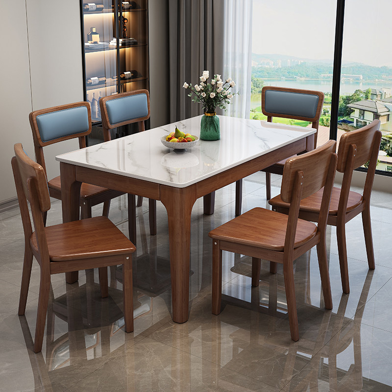 Rock plate table minimalist modern light and luxurious household small family type rectangular dining table solid wood dining table and chairs combined