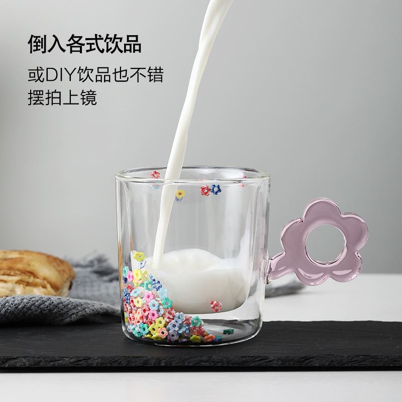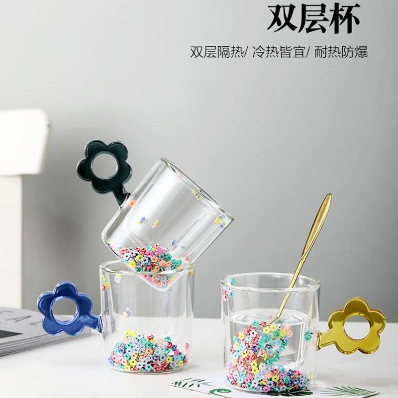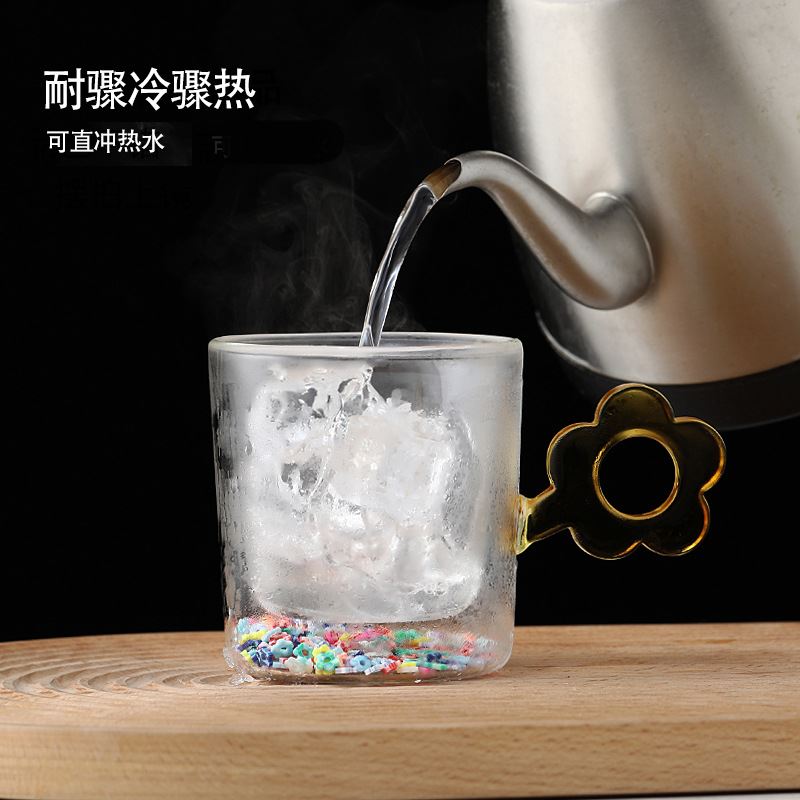 Quicksand heart transparent love bobo cup cute high-value floating water cup glass Bobo cup mug