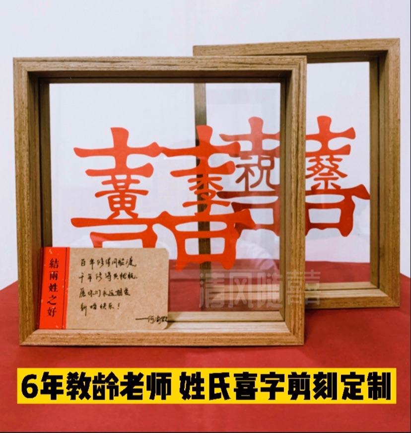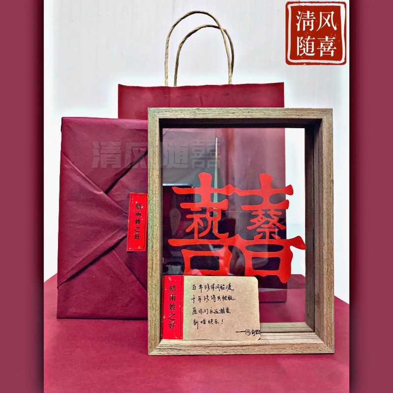 囍red, including paper-cut, 8-inch elegant teak photo frame, exquisite hand-held kraft paper bag, 囍gift set, lovable little doll, special customized version, including packaging date, customized silhouette, anniversary version, customized version, green and cool