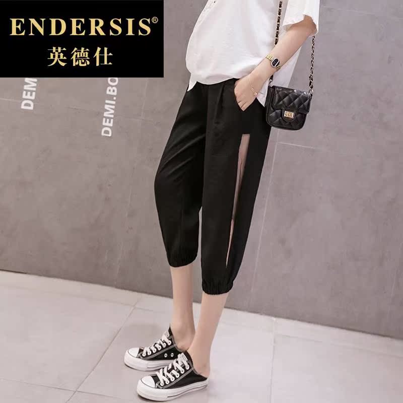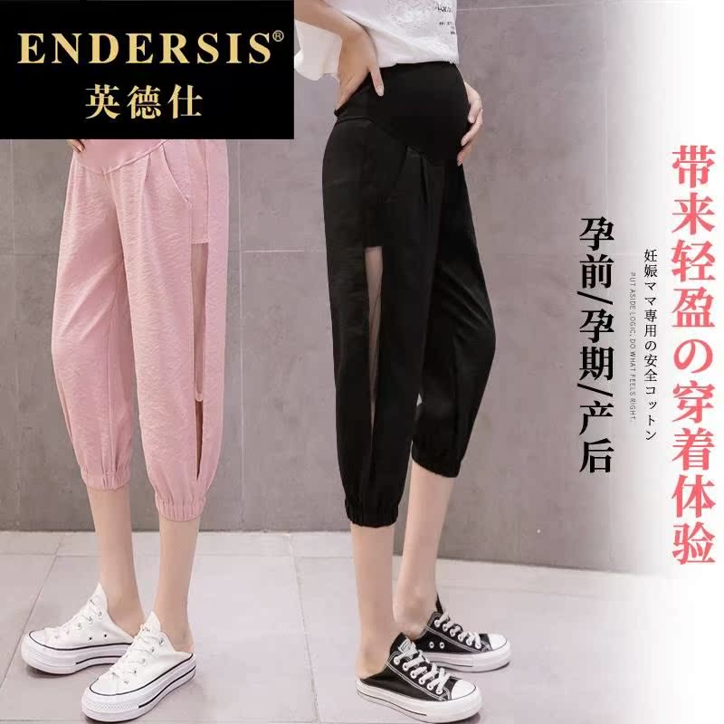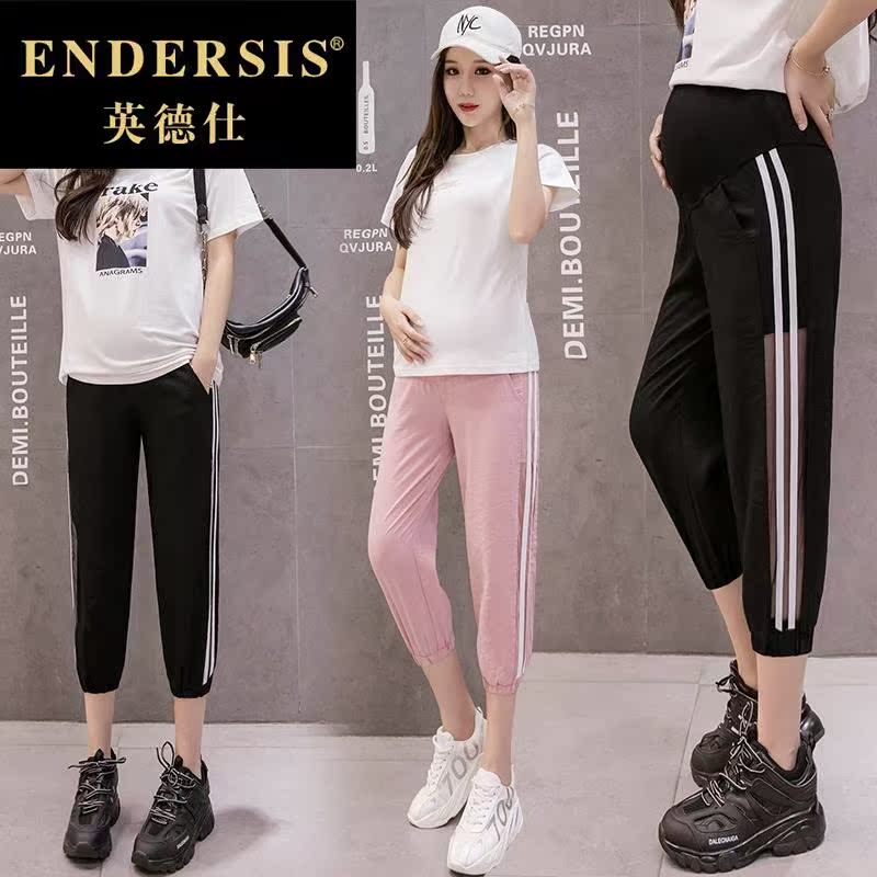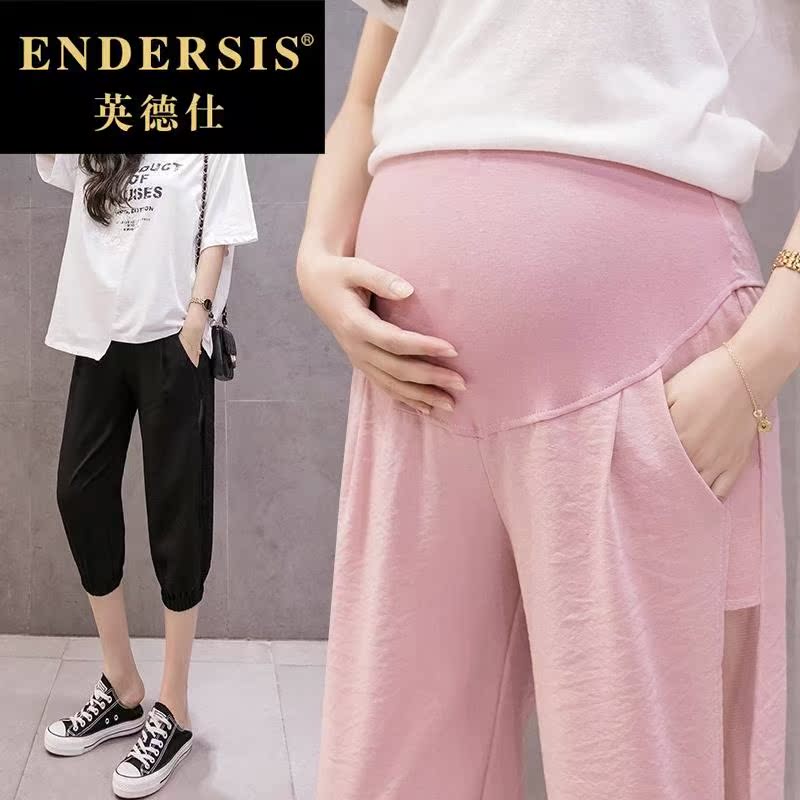 Maternity pants summer thin section first trimester large size outer wear cropped pants small ice silk sweatpants DM0616