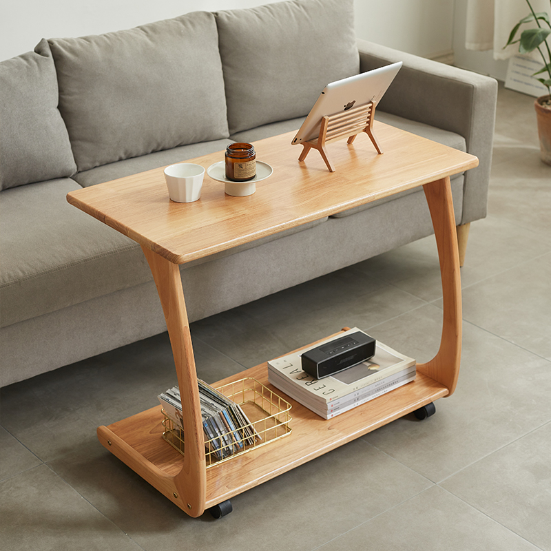 Solid wood sofa side several mobile living room tea side tabletop frame simple bedhead small table square wheel