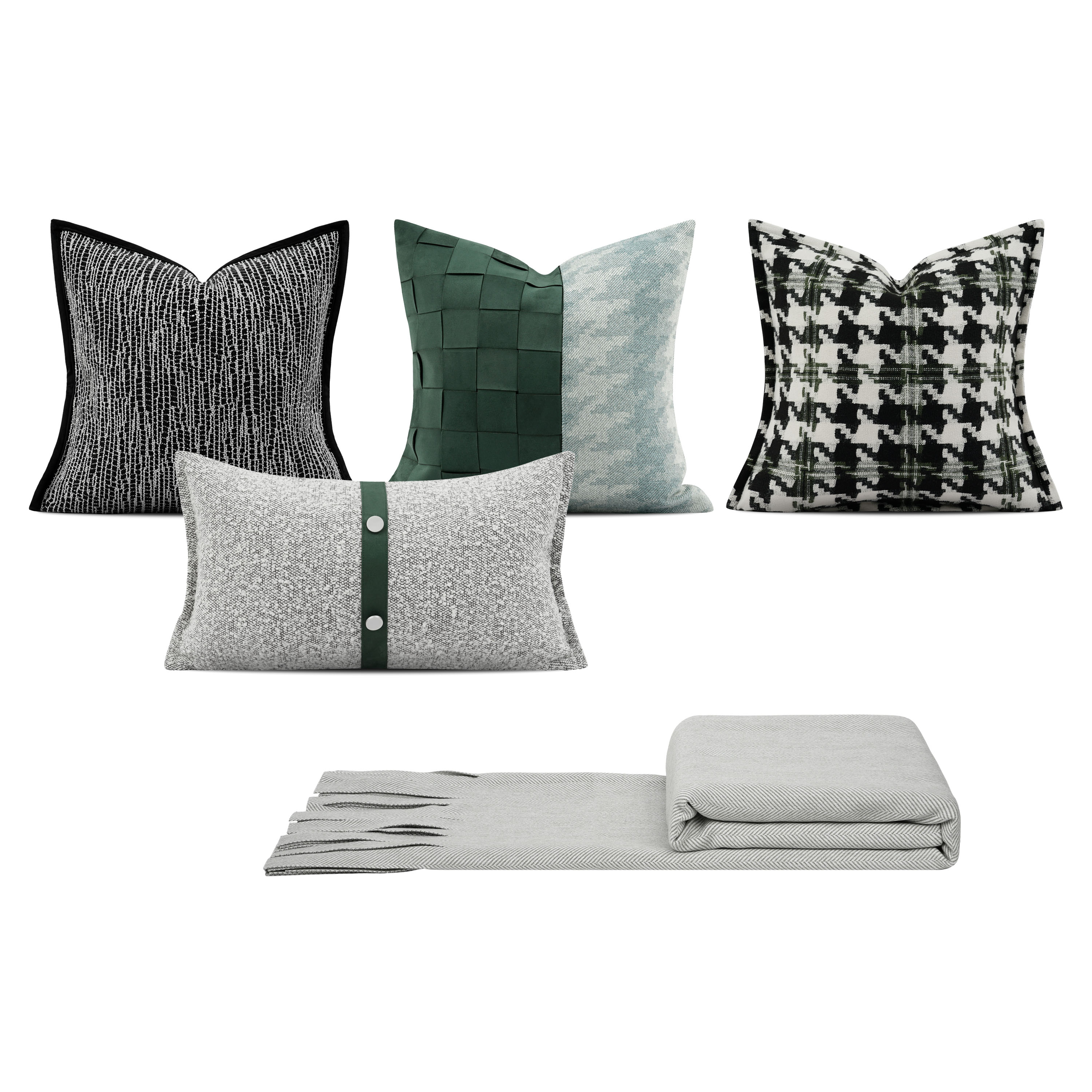 Deep gray green original sample room living room sofa pillow cushion floating window soft decorated bed head with blanket towel