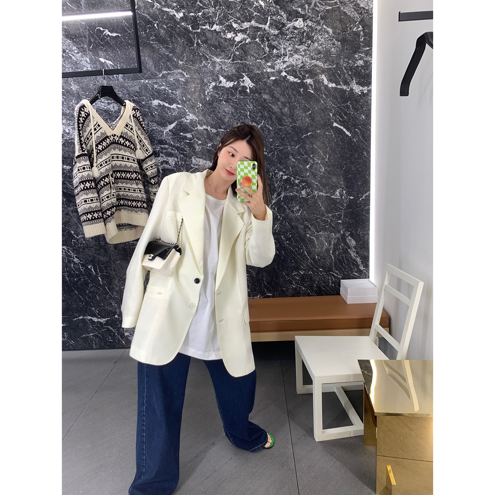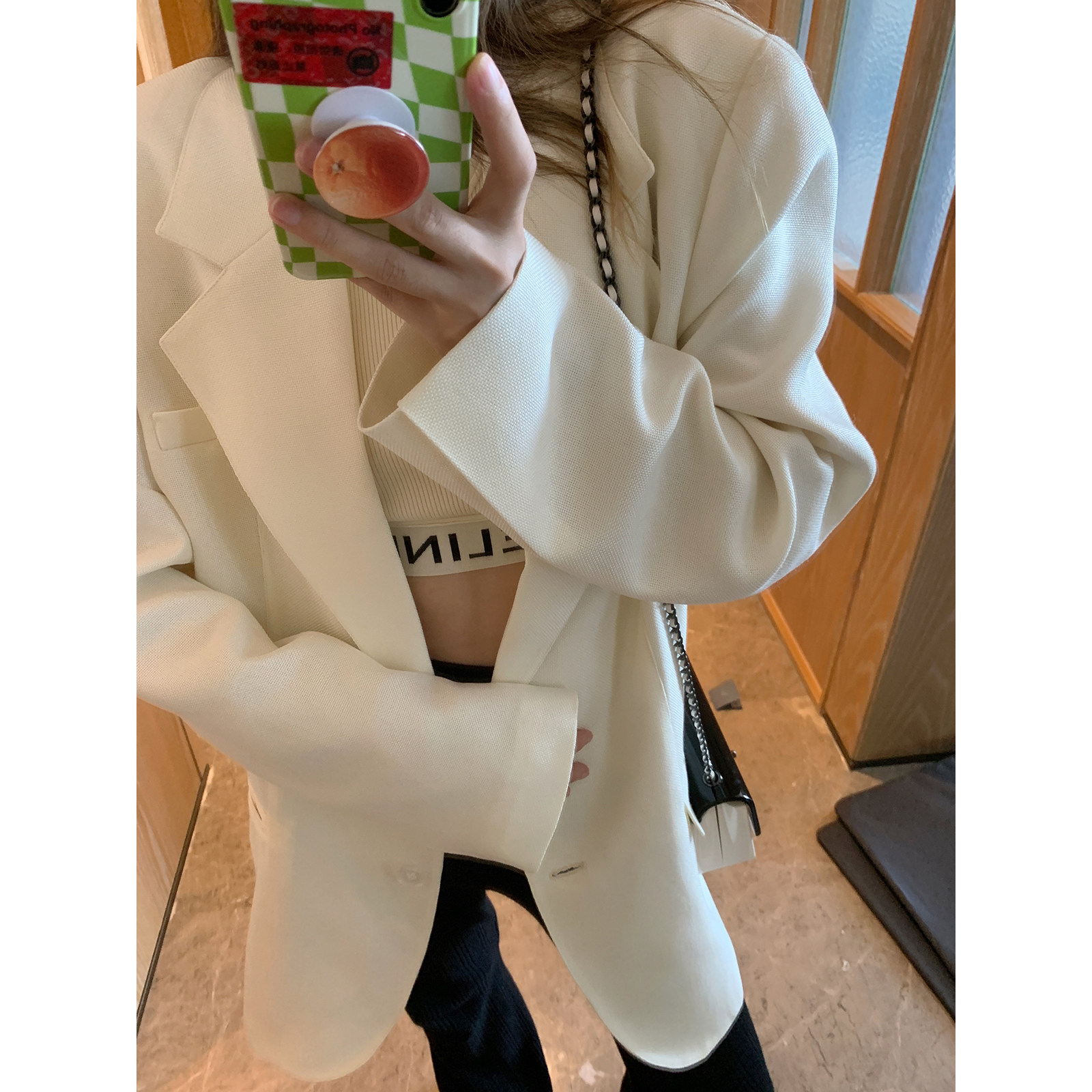 vcruan Axige long-awaited texture black and white buckle glossy suit jacket women's summer new loose top