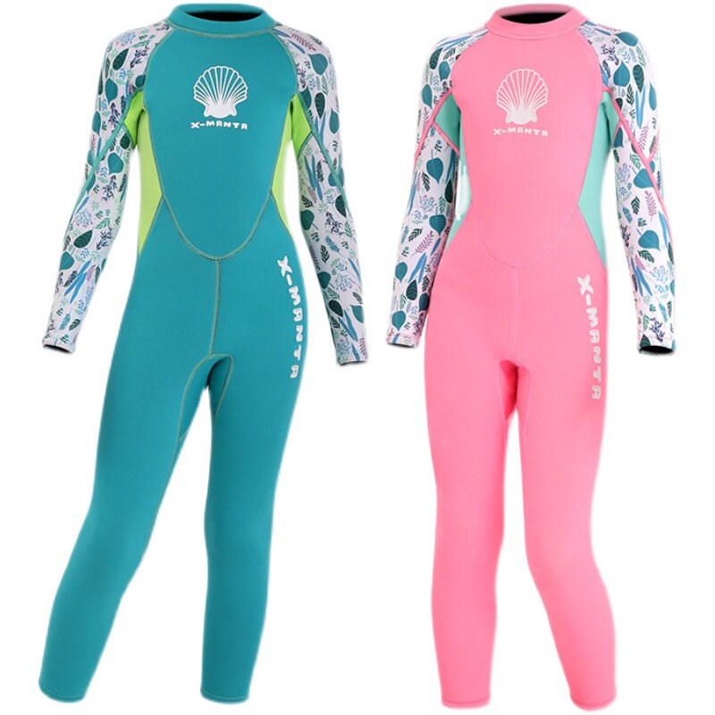New children's swimsuit female middle-aged children 2 5MM one-piece Western style long-sleeved warm sunscreen quick-drying wetsuit swimsuit