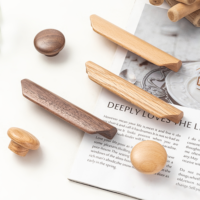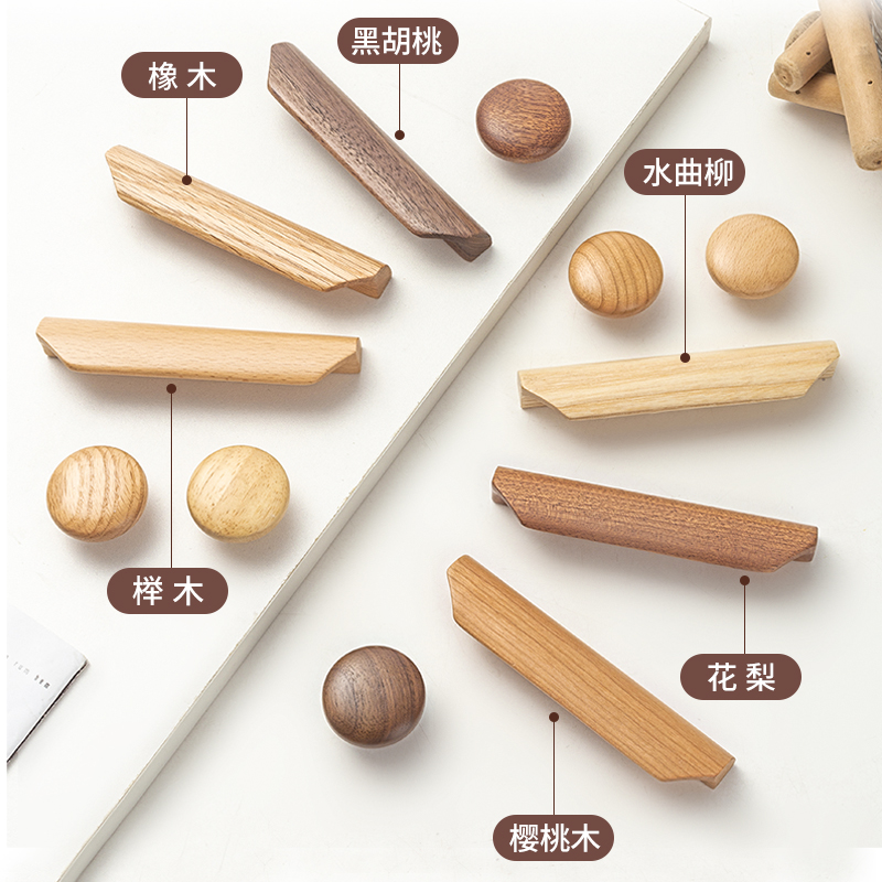 Simple wardrobe solid wood handle drawer overall cabinet shoe cabinet log color single hole wood wooden door handle beech handle