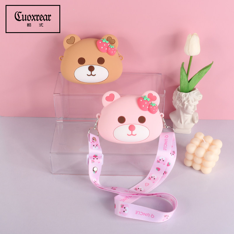 Children's Bag Cute Little Girl Princess Messenger Bag Cartoon Silicone Bear Bag Girly Heart Shoulder Coin Purse