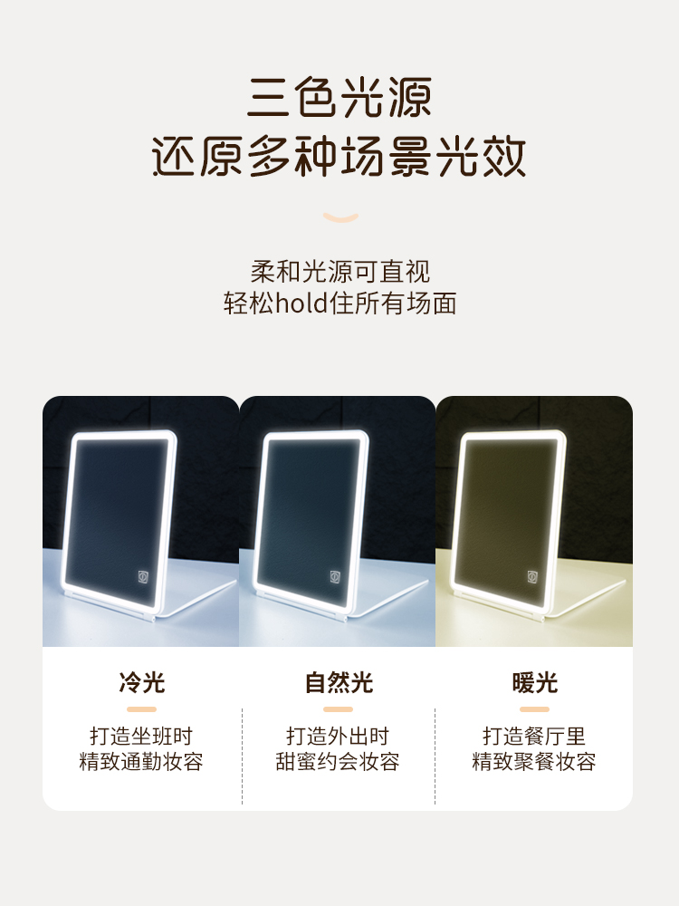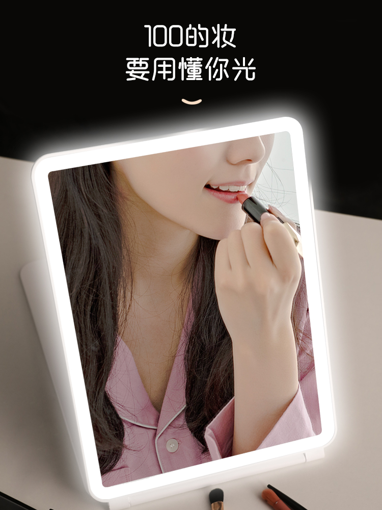 Led makeup mirror with light portable folding student dormitory large home desktop beauty makeup small mirror