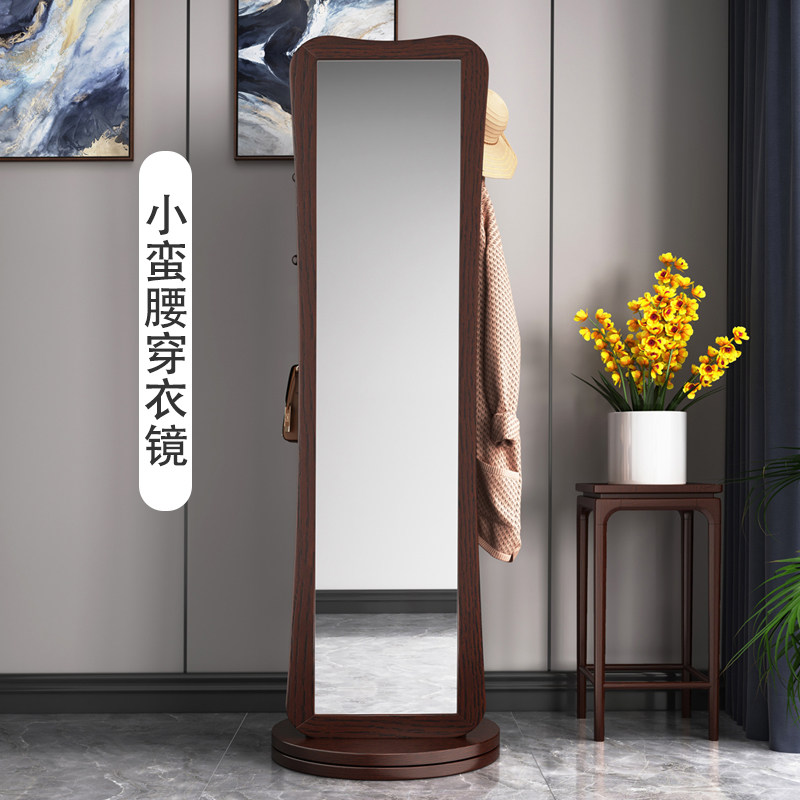 Designer solid wood dressing mirror porch full-body mirror bedroom new Chinese style floor mirror high-definition multi-function rotatable mirror