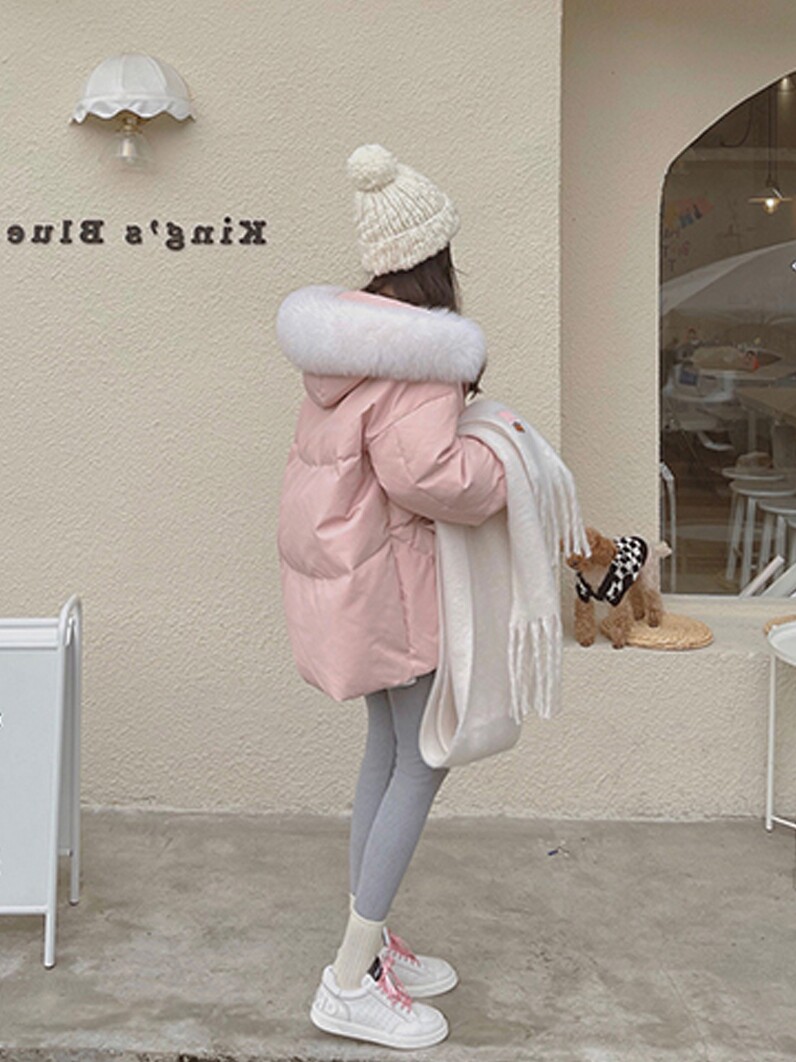 Down jacket women's 2022 winter new Korean version of the mid-length white duck down large fur collar bread clothing thickened hooded jacket