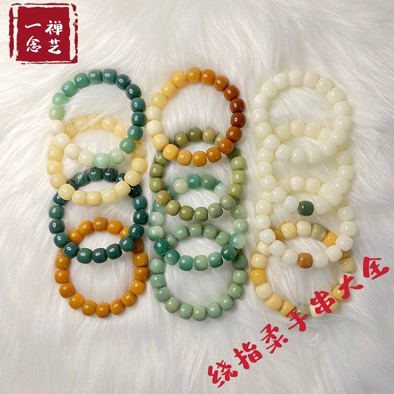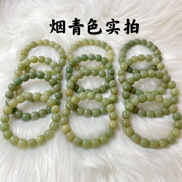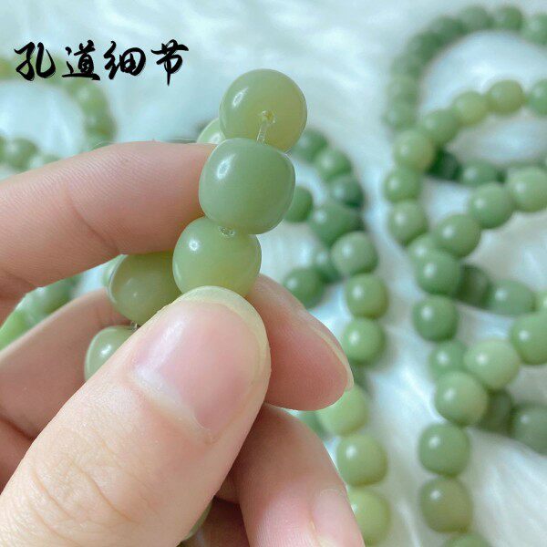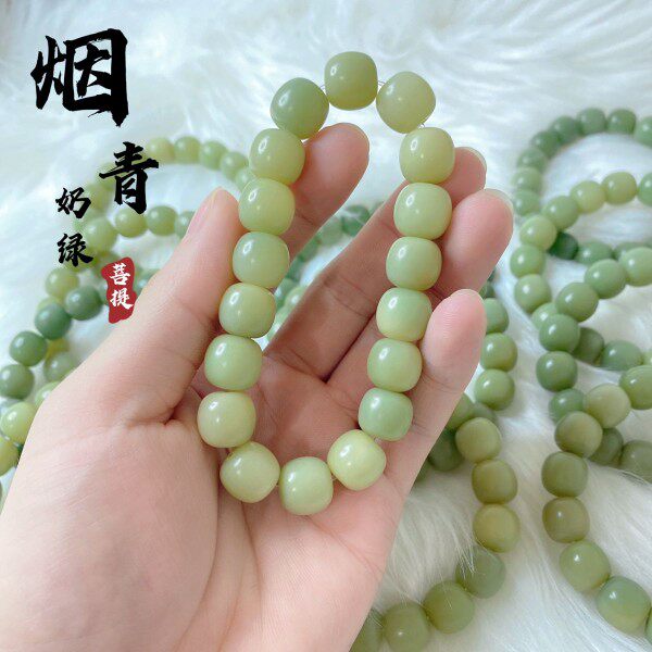 Gradient white jade bodhi root bracelet female round finger soft text playing with bodhi child Buddha beads holding green yin skin male plate playing hand chisel
