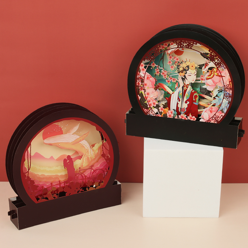 Guochao style paper art three-dimensional puzzle diy material semi-circular paper carving decoration decoration holiday event gift