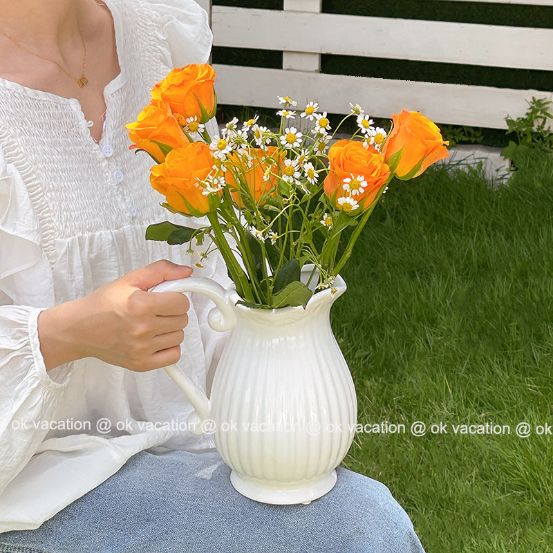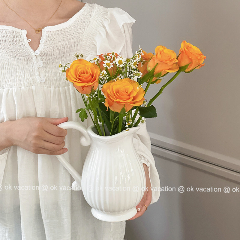 ins Nordic pure ceramic pot vase Roman striped flower flower flower living room home decoration