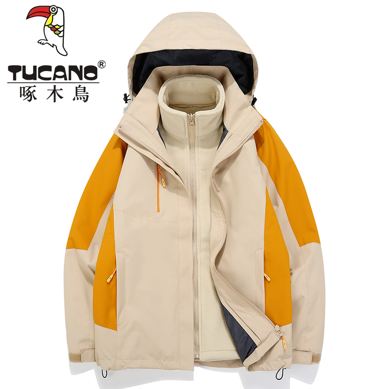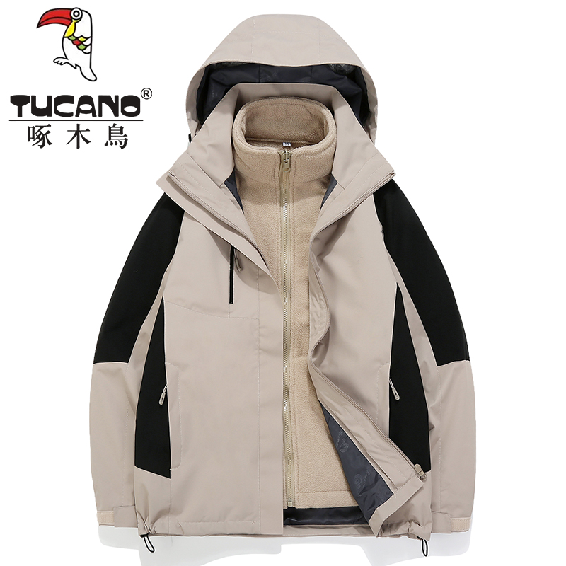 Woodpecker with three-in-one detachable jacket autumn and winter outdoor windproof and waterproof plus suede mountaineering suit-Taobao