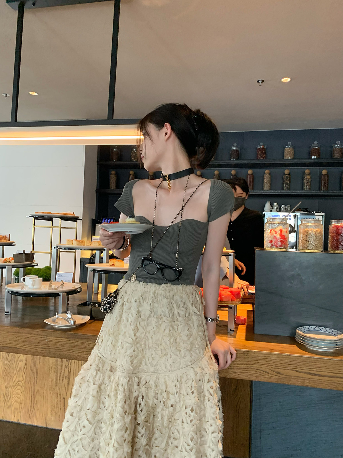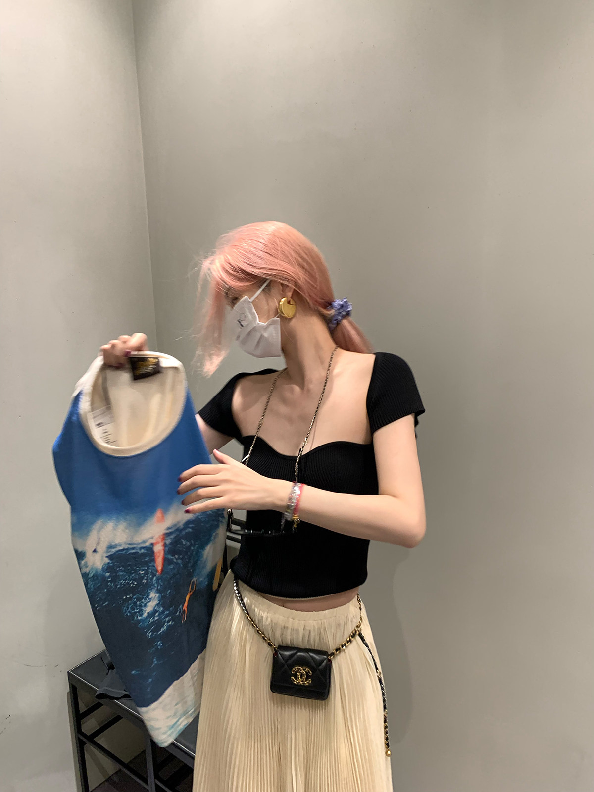 vcruan Ashigo wavy chest knitted small short-sleeved knitted top women's 2022 summer new pullover vest