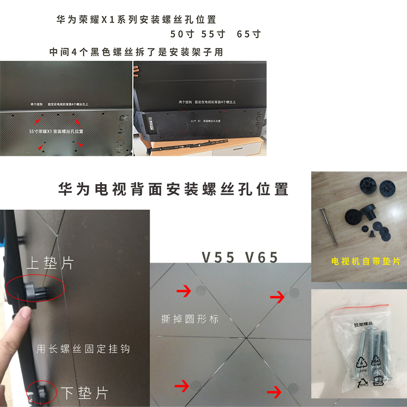 General Huawei smart screen V55V65 Honor X1X2 TV hanging screw hole fixed 4 screw accessories