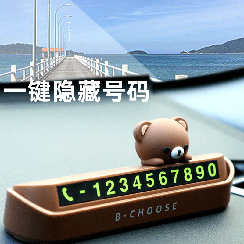Temporary parking number plate moving car Phone card Cartoon Cute Woman Car On-board Pendulum bear Car Interior Supplies