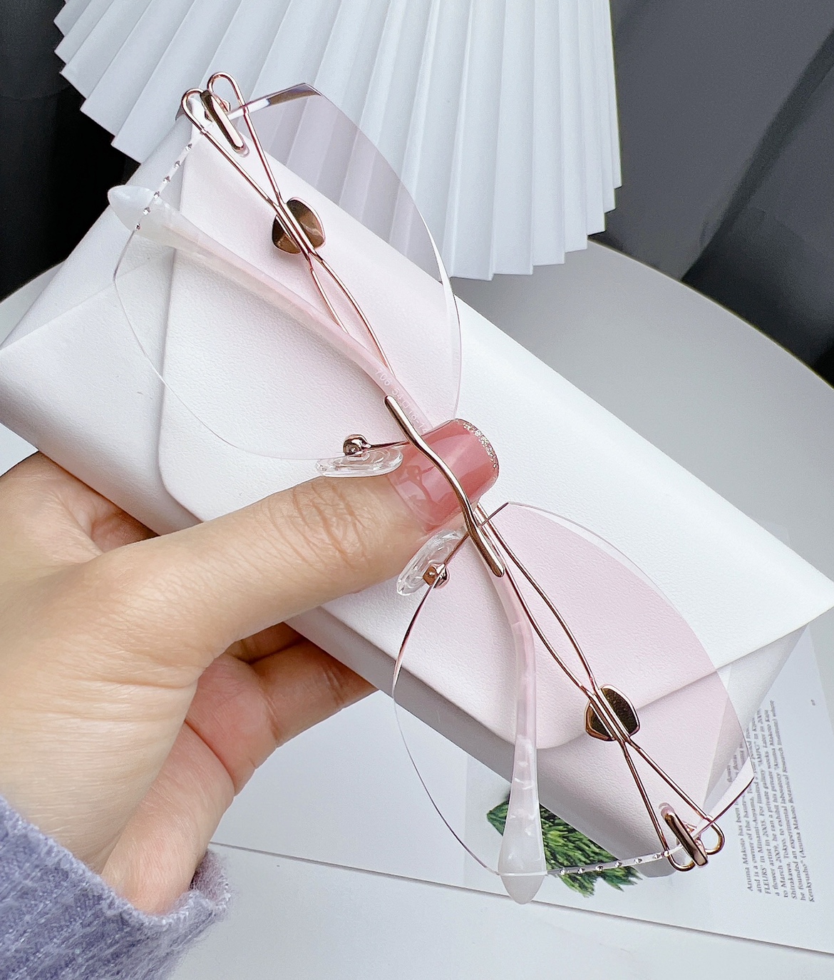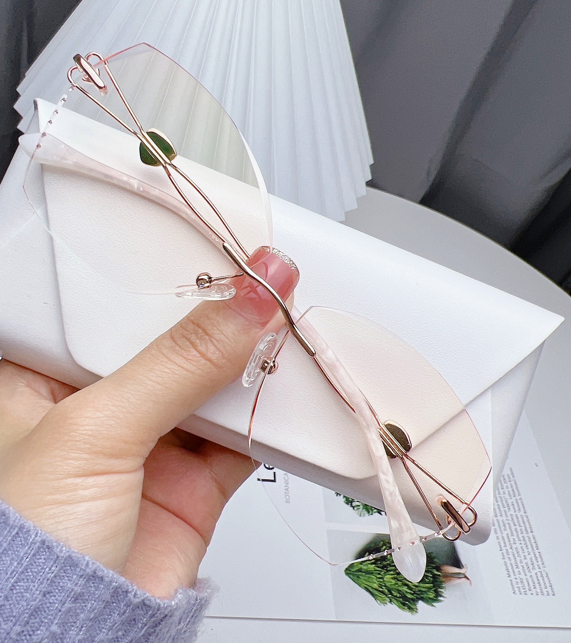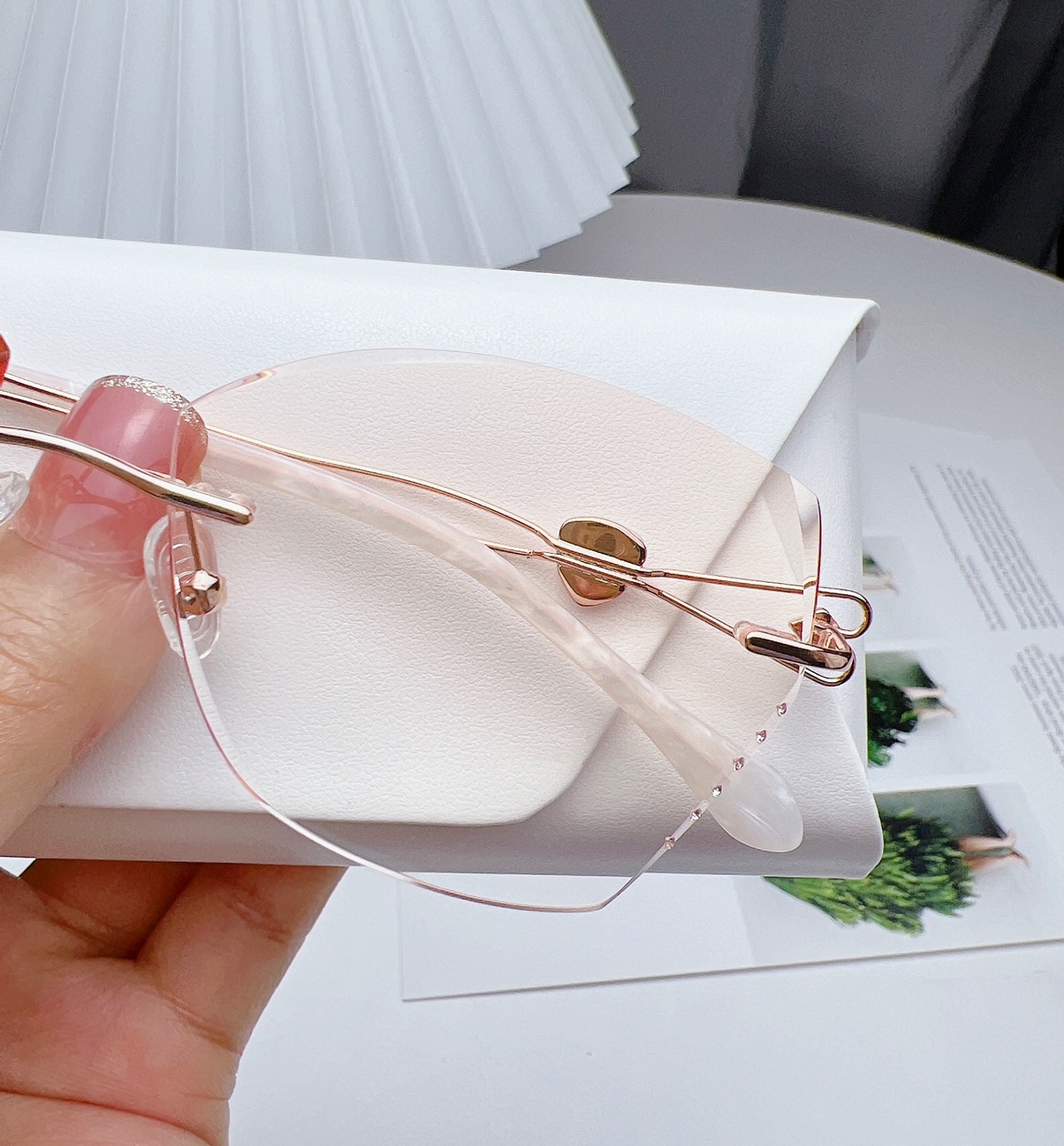 Diamond cut frame glasses myopia female online with degree anti-blue light borderless ultralight frame