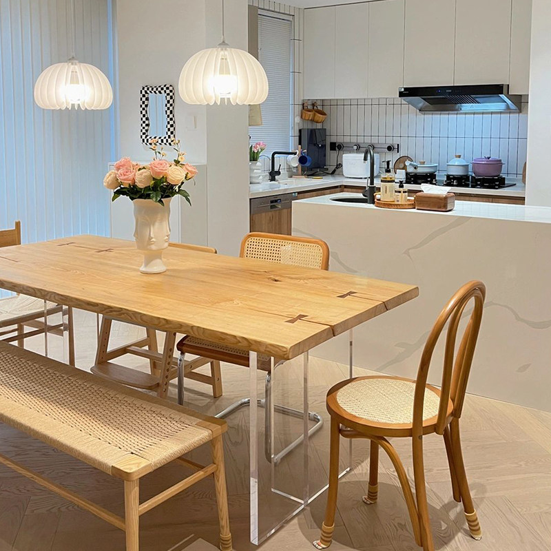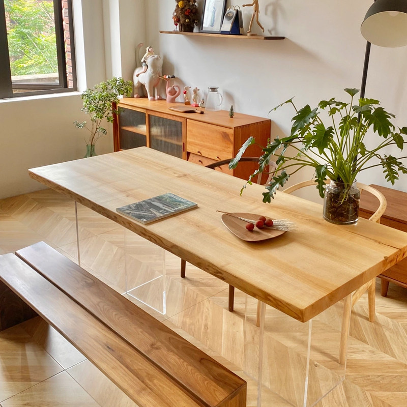 North American ash wood dining table solid wood large board table workbench simple desk tea table black walnut Okan river table