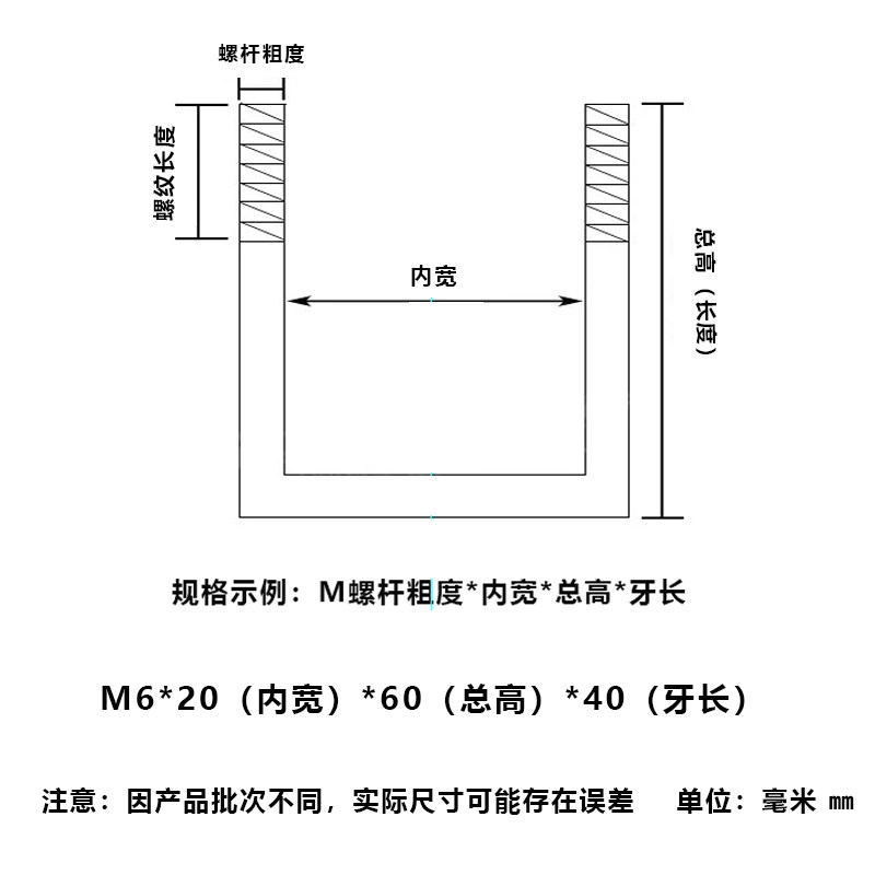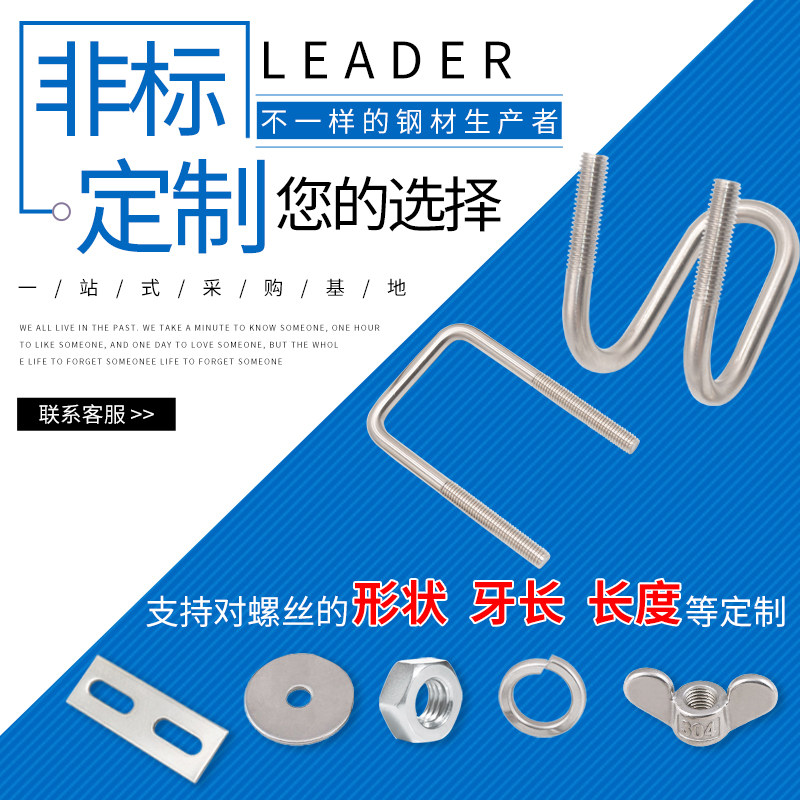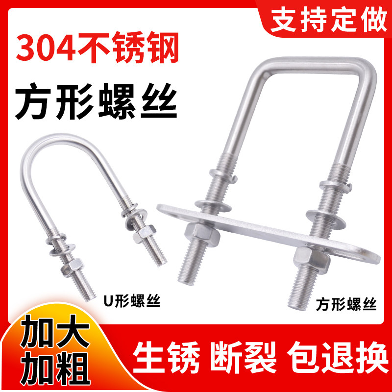 304 stainless steel square screw lengthened custom made right-angle bolt pipe clamp U-shaped screw rod M6M8M10