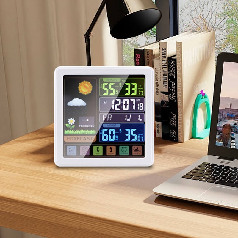Wireless weather clock color screen thermometer clock alarm clock precise smart desk clock student bedroom bedside clock backlight