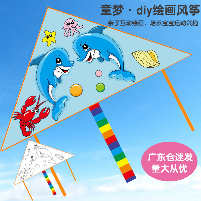 New kite diy children's painting cartoon blank coloring kindergarten hand-painting material bag umbrella cloth easy to fly