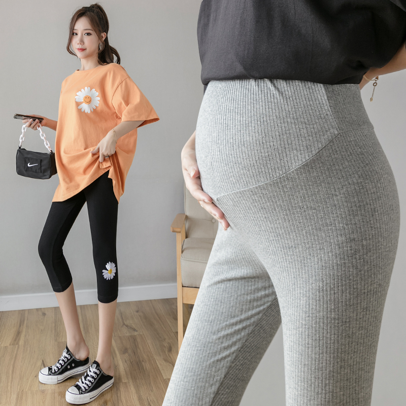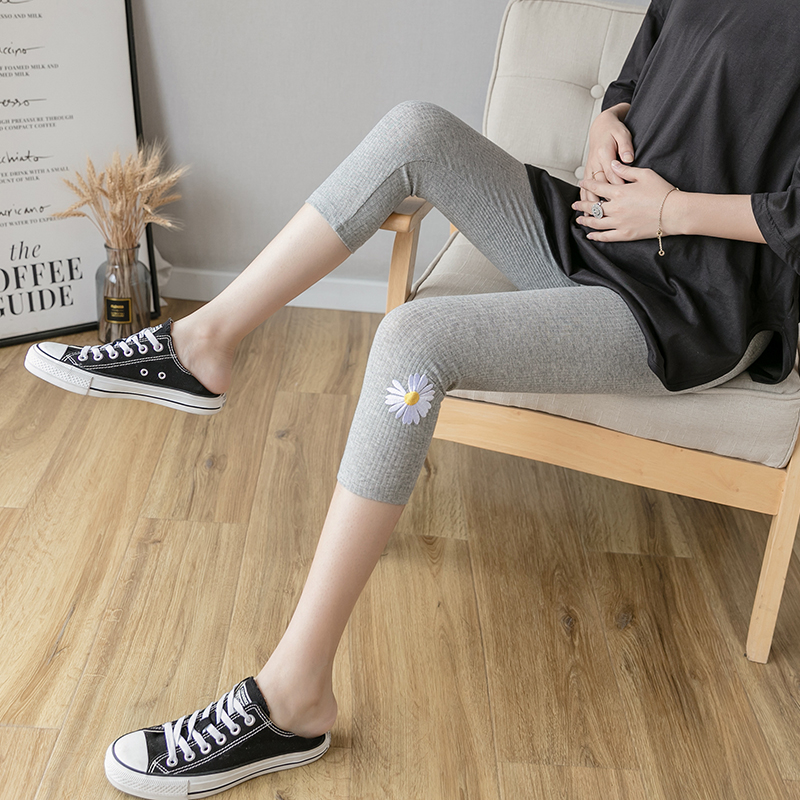 Pregnant women in 2022 summer net red new pregnant women wear cotton pants fashion daisies outside wearing 7 pants
