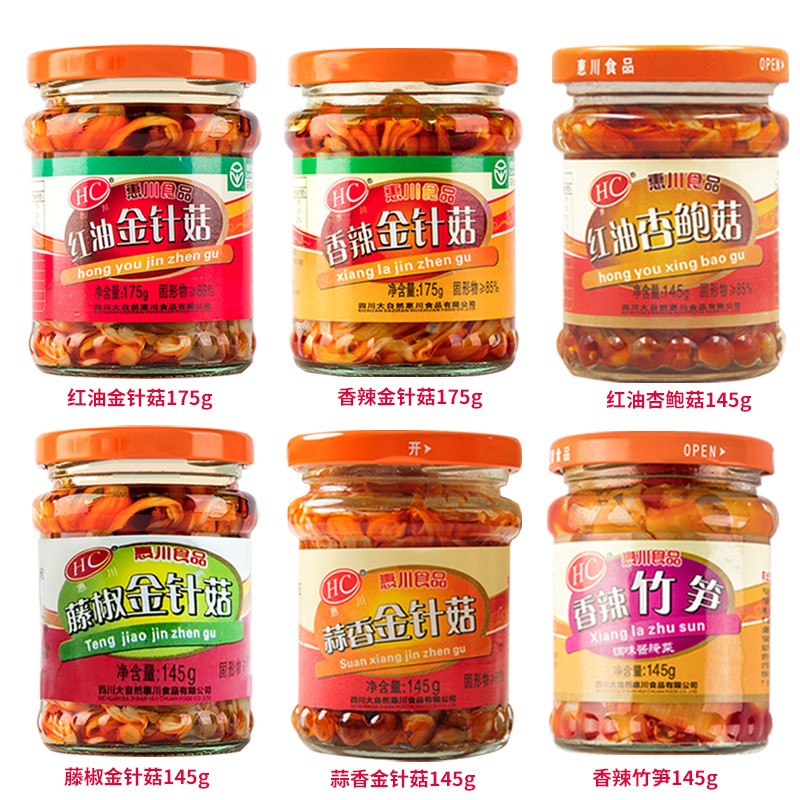 Huichuan red oil Flammulina velutipes meal 175g*4 bottles of ready-to-eat spicy snacks spicy appetizers canned pickles