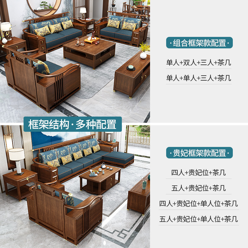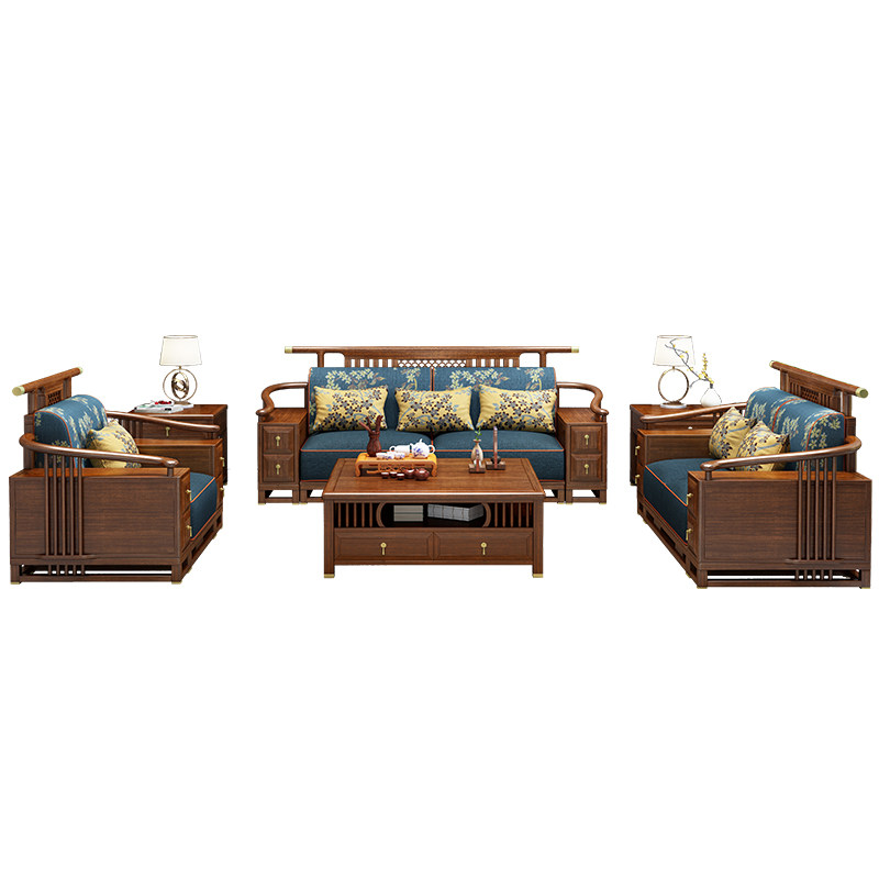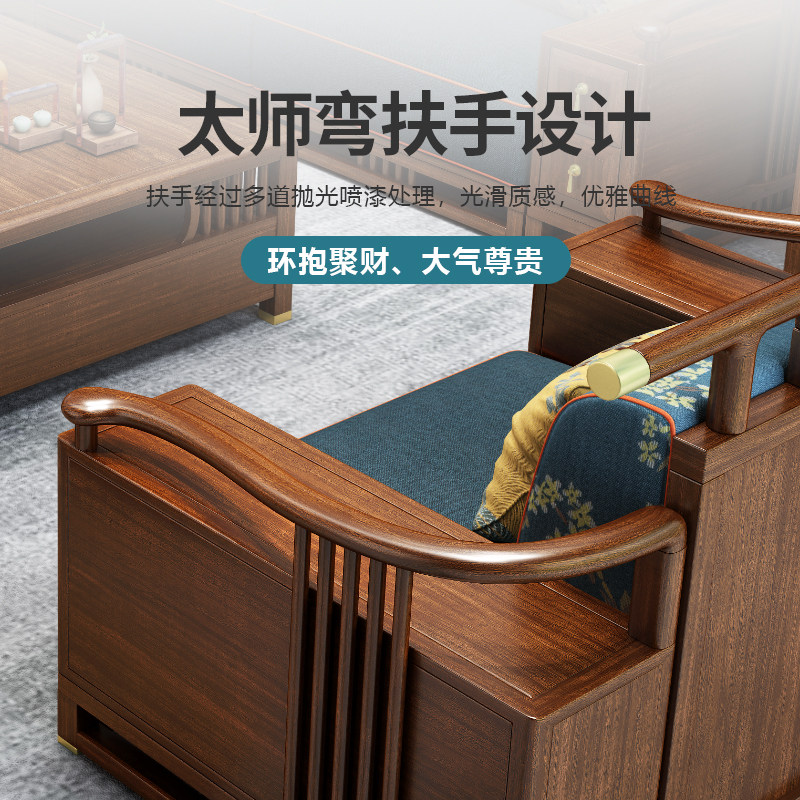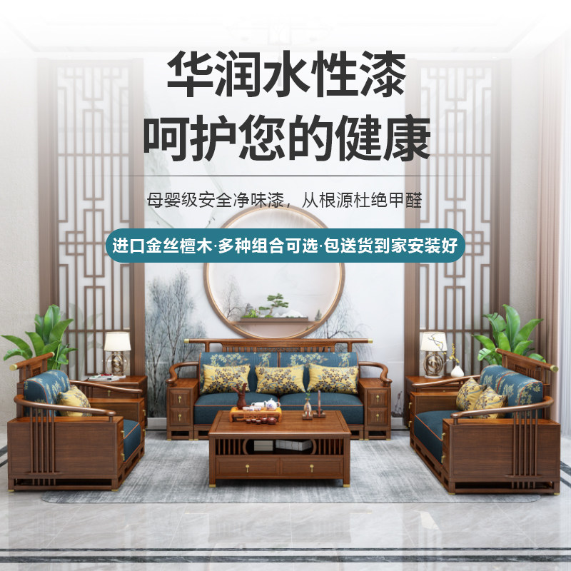 Living room furniture combination golden silk sandalwood Chinese style villa large apartment winter and summer dual-use storage new Chinese style solid wood sofa