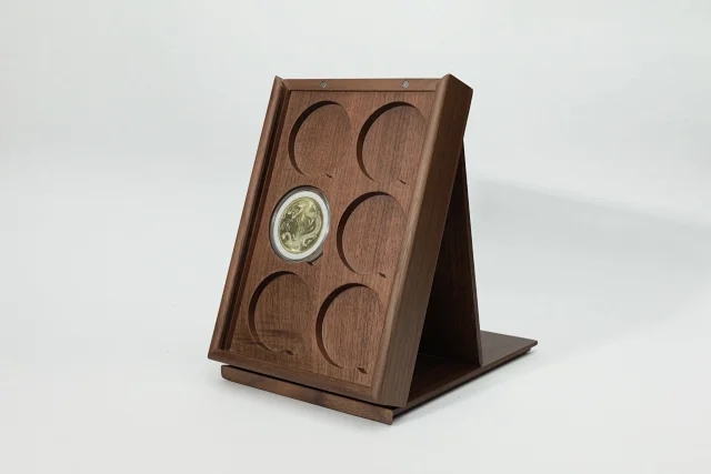 Yuantai wooden letter black walnut wood 6 pieces 52mm round box ancient coins silver dollar gift display box coin collection box