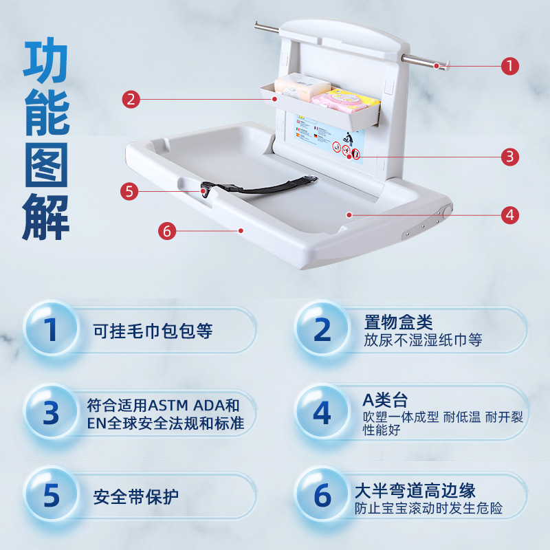 Baby Safety Seat Nursing Table Model A Hanging Rod (Can Hang Clothes and Bags) Nursing Table Model B K8502A Safety Seat (Long Version) K8502B Safety Seat (Short Model) Stainless Steel Nursing