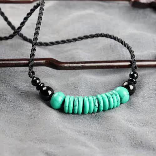 National Wind Green Pine Stone Collarbone Short Necklace Couple Necklace 100 lap Yunnan neck Scar Minimalist Fashion Summer
