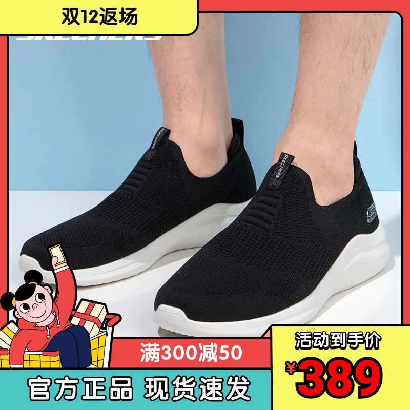 Skechers men's shoes slip on winter mesh warm lazy shoes official flagship walking shoes light casual shoes men