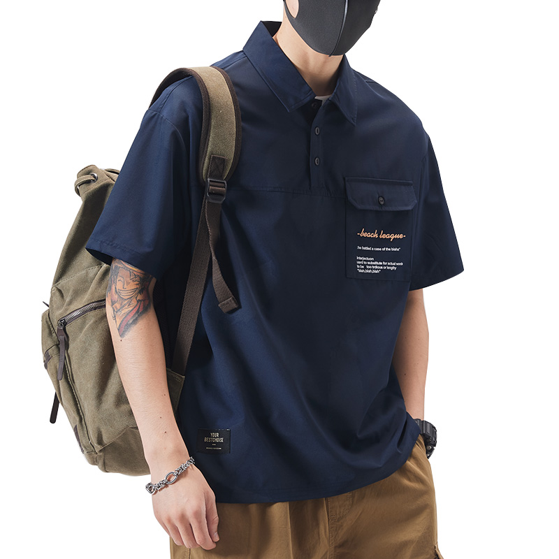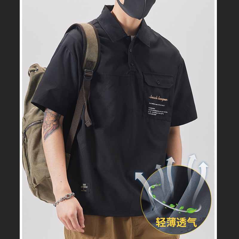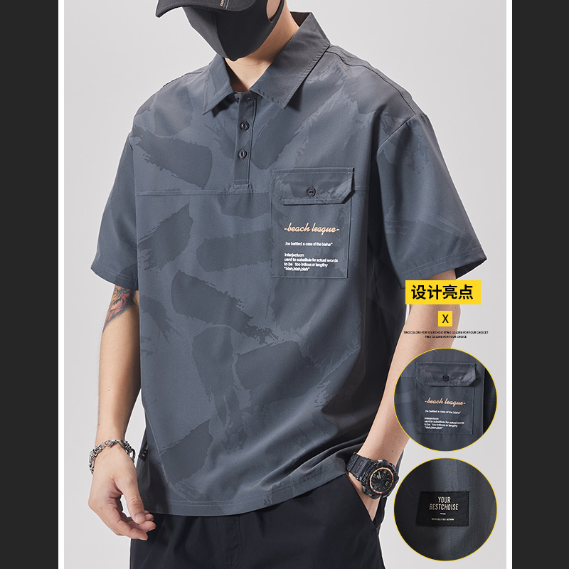 Ice silk T-shirt men's summer thin short-sleeved POLO shirt loose tide brand tooling shirt 2022 quality lapel T-shirt