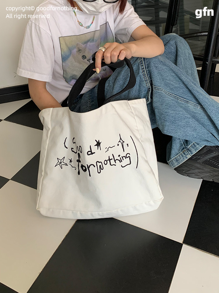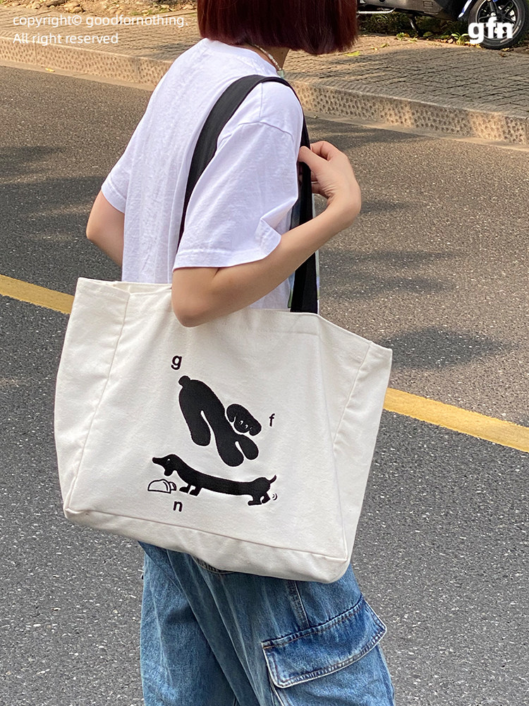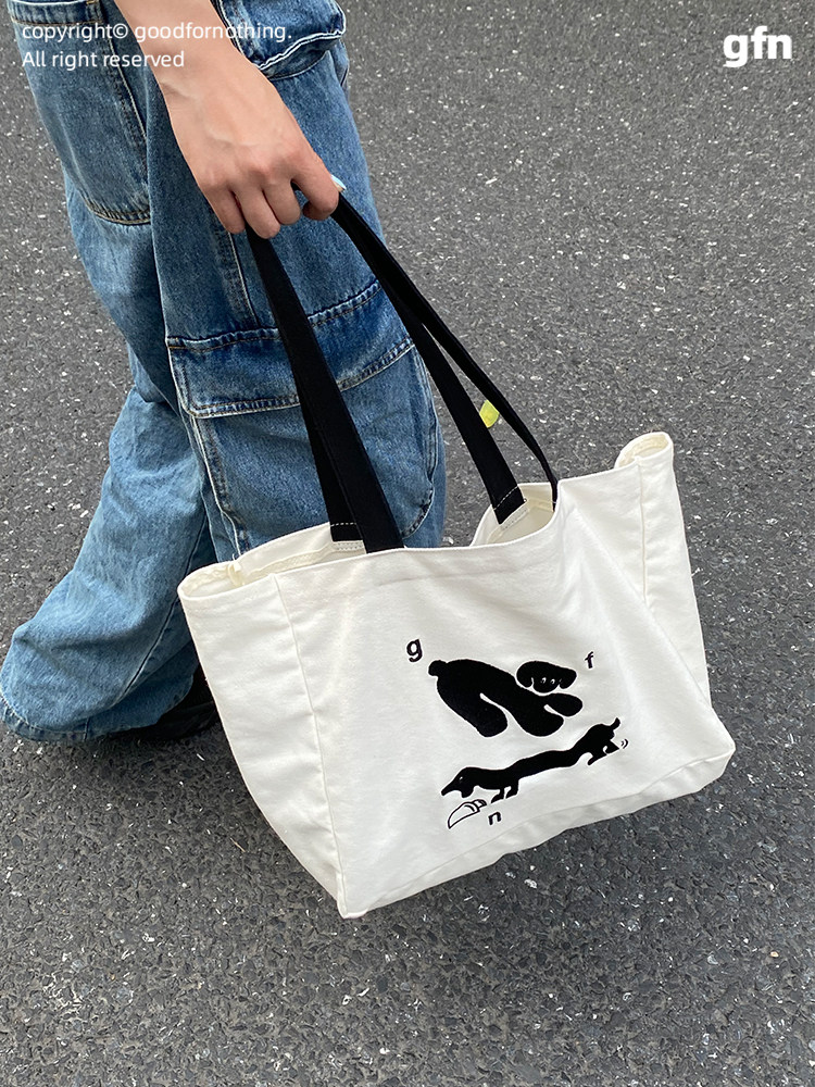 Goodfornothing original puppy double-sided embroidery shoulder bag canvas bag tote bag commuting