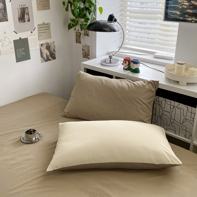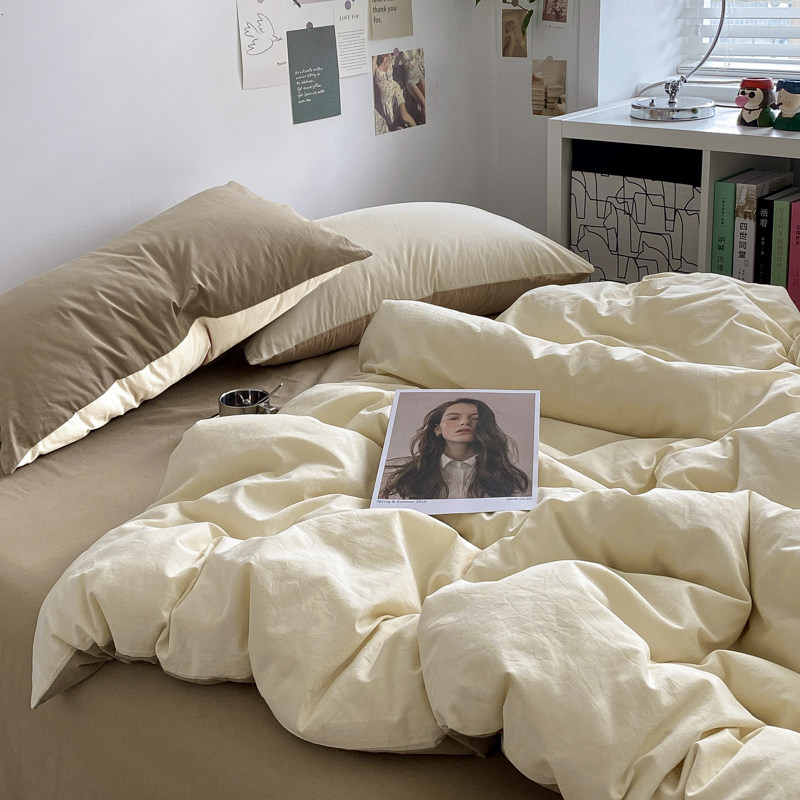 Simple color matching four-piece set of pure cotton cotton bed quilt summer solid color three-piece set of washed cotton single double bed