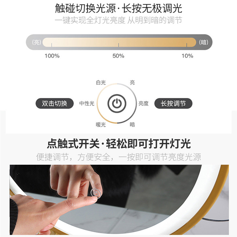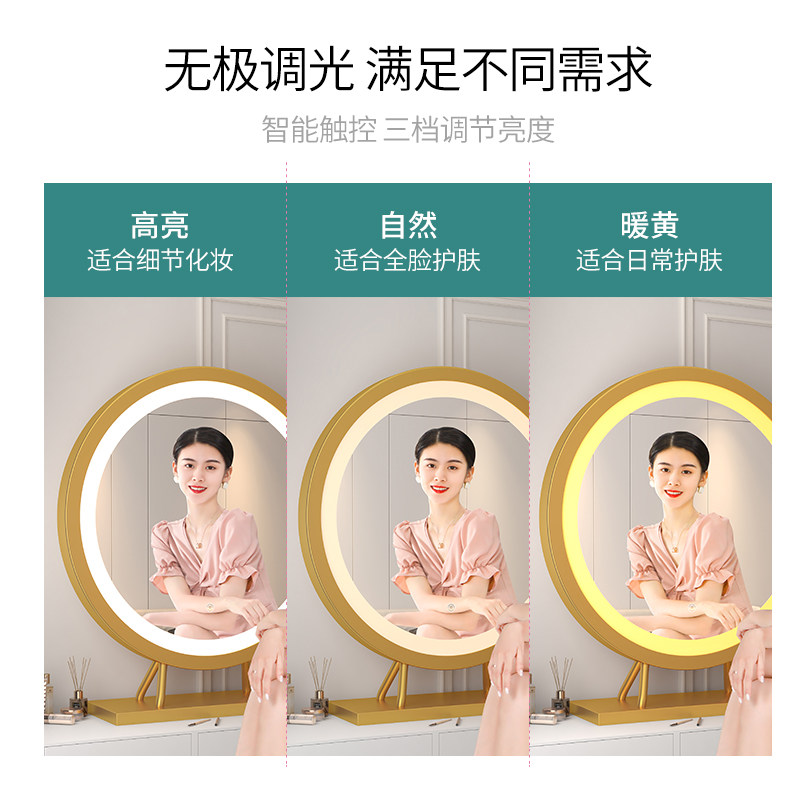 Cosmetic mirror vertical household network red fill lights in dresser LED with lights student dorm desktop mirror