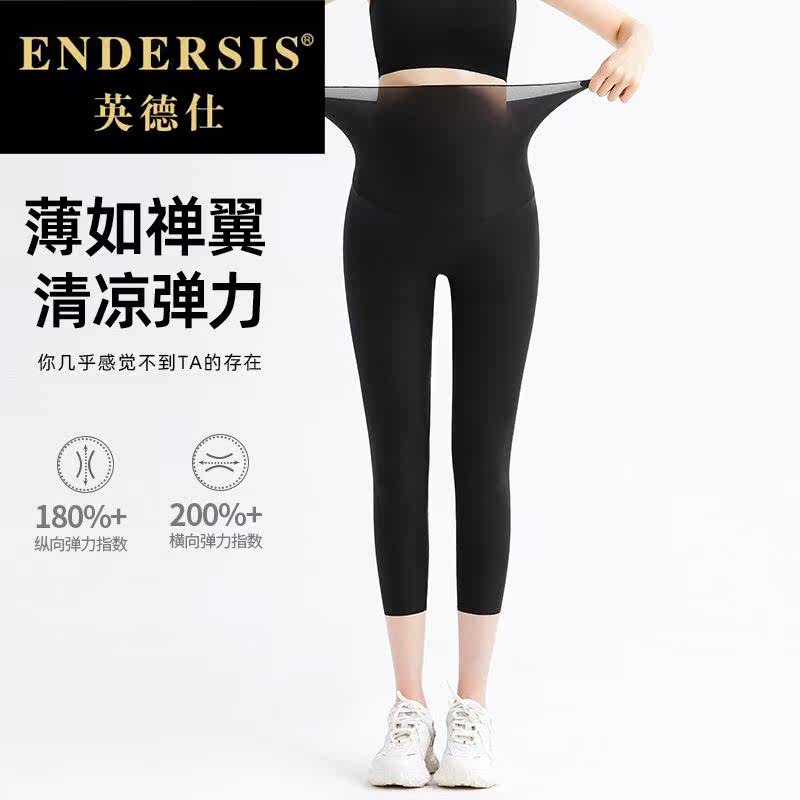 Ultra thin pregnant woman in seven minutes with pants outside wearing no mark shark skin high waist belly wear DM0617