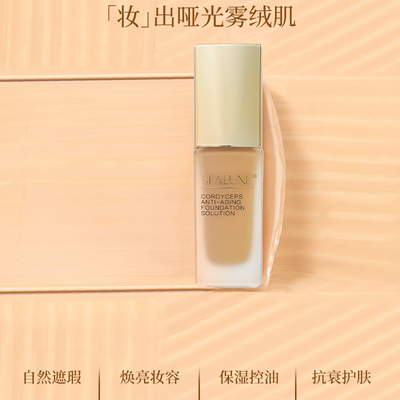 Green Leaf Shinosilk Caterpillar Fungus Anti-Decay Powder Base Liquid Ivory White 40g Moisturizing Control Oil Lasting Makeup Dressing Flawless