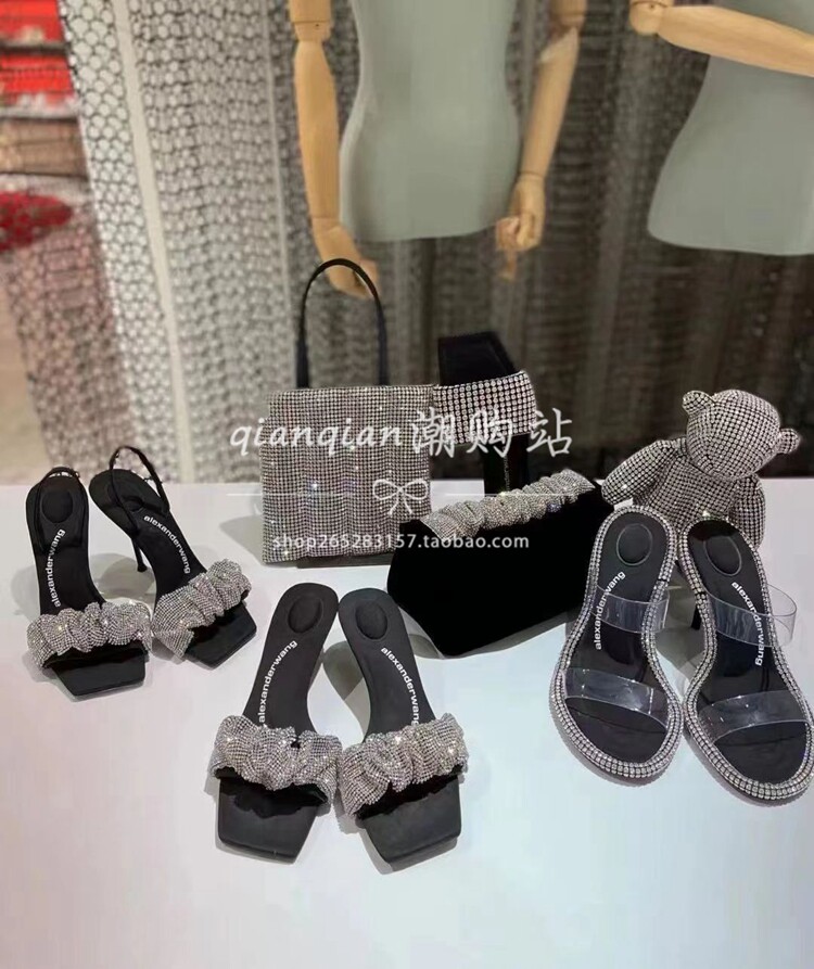 Summer women's shoes new AW king sandals stiletto with rhinestone slippers Yang Mi same high heels sexy