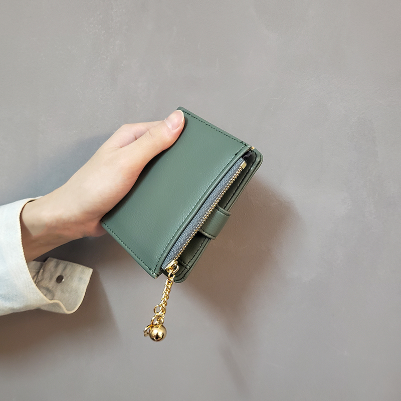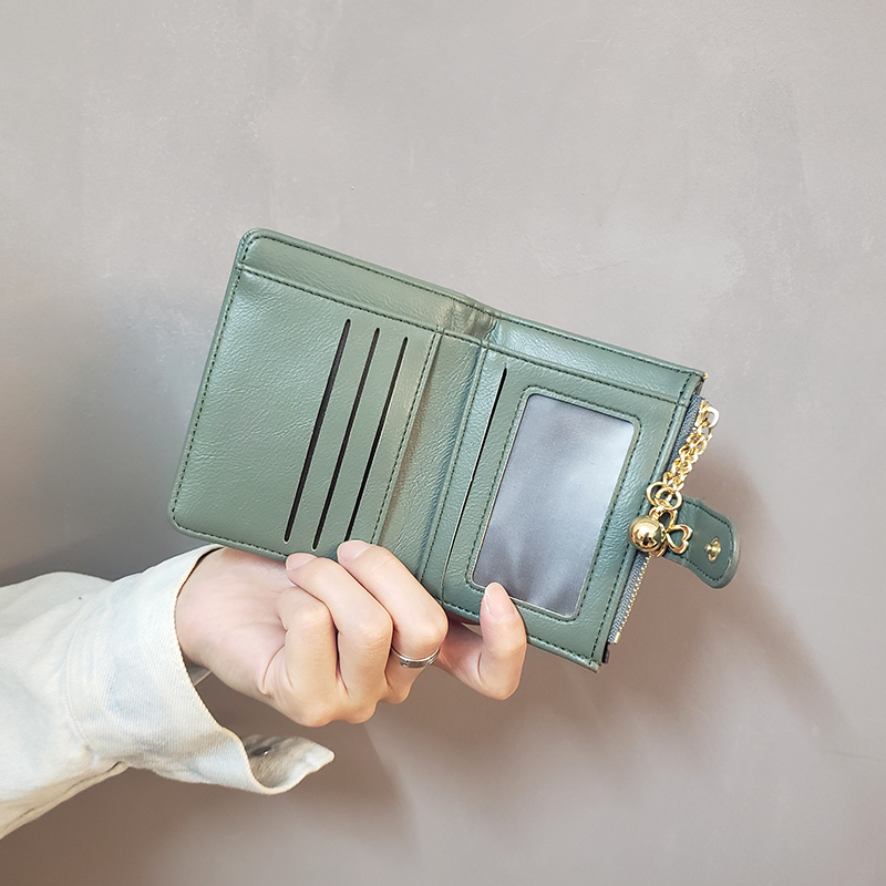Three-leaf pendant short and small wallet woman 2022 new Korean version tide small freshening student ultra-thin folio buckle leather-Taobao