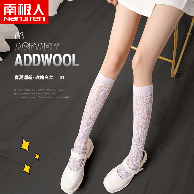 Calf Socks Lace Lace Black Roleita Midbarrel Silk Socks Summer Thin half Socks Jk Pure Desire White Silk