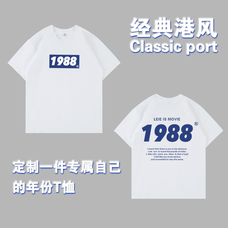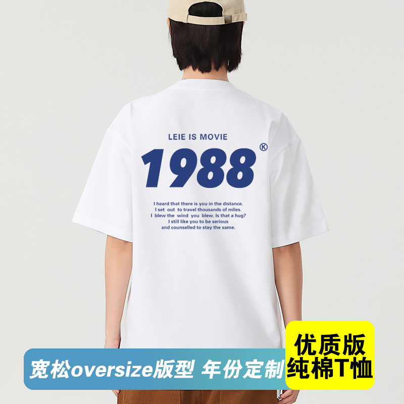 Year t-shirt custom logo text pure cotton loose men and women creative birthday gift design sense niche couple outfit