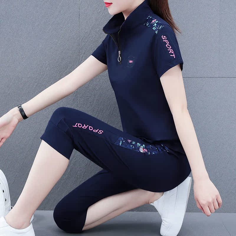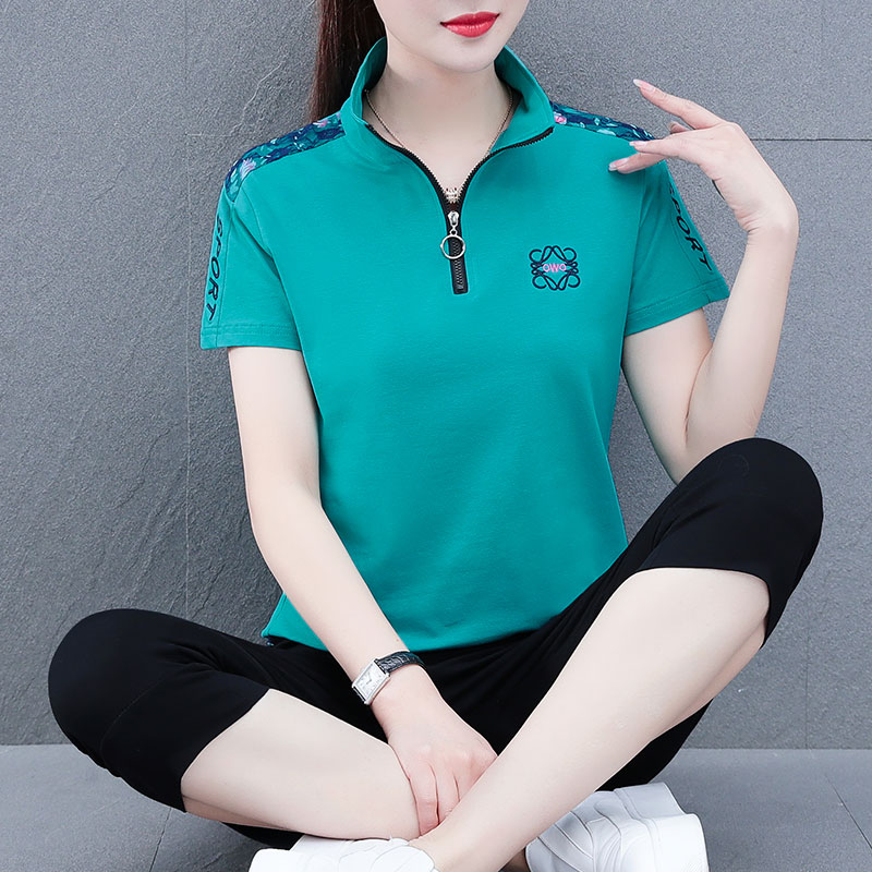 Fat mm sister big size women's fashionable sports suit is thin mother cover the meat high waist summer dress cotton loose short sleeves