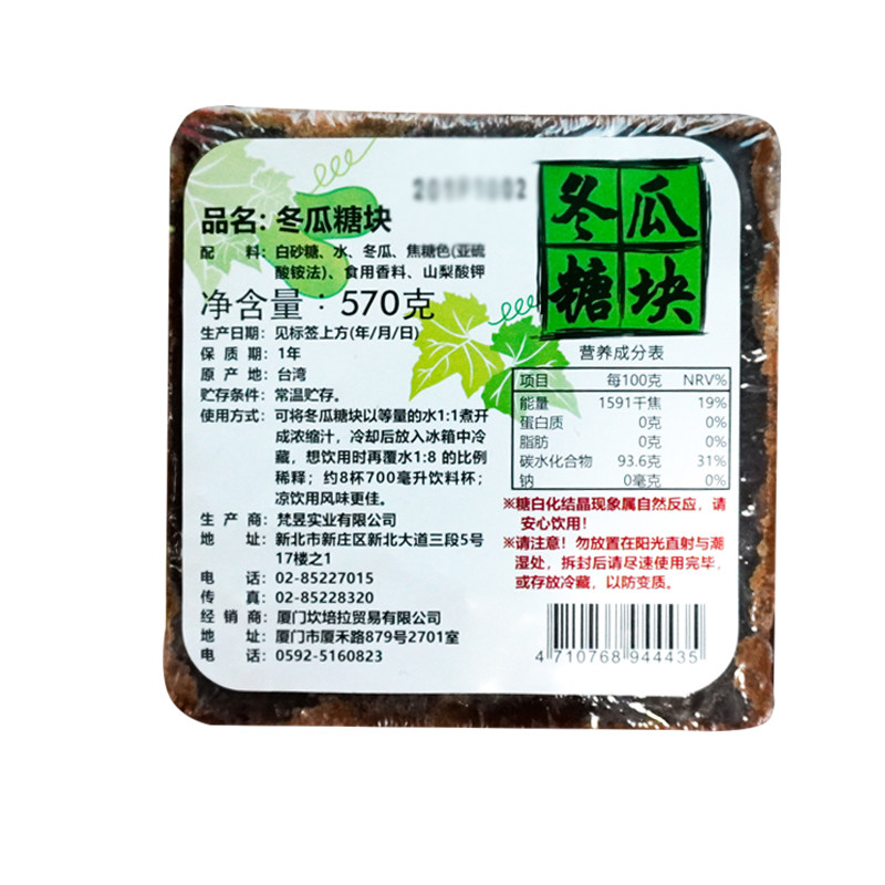 Taiwan imported winter melon tea brick sugar block 570g authentic winter melon tea drink winter melon tea concentrated juice