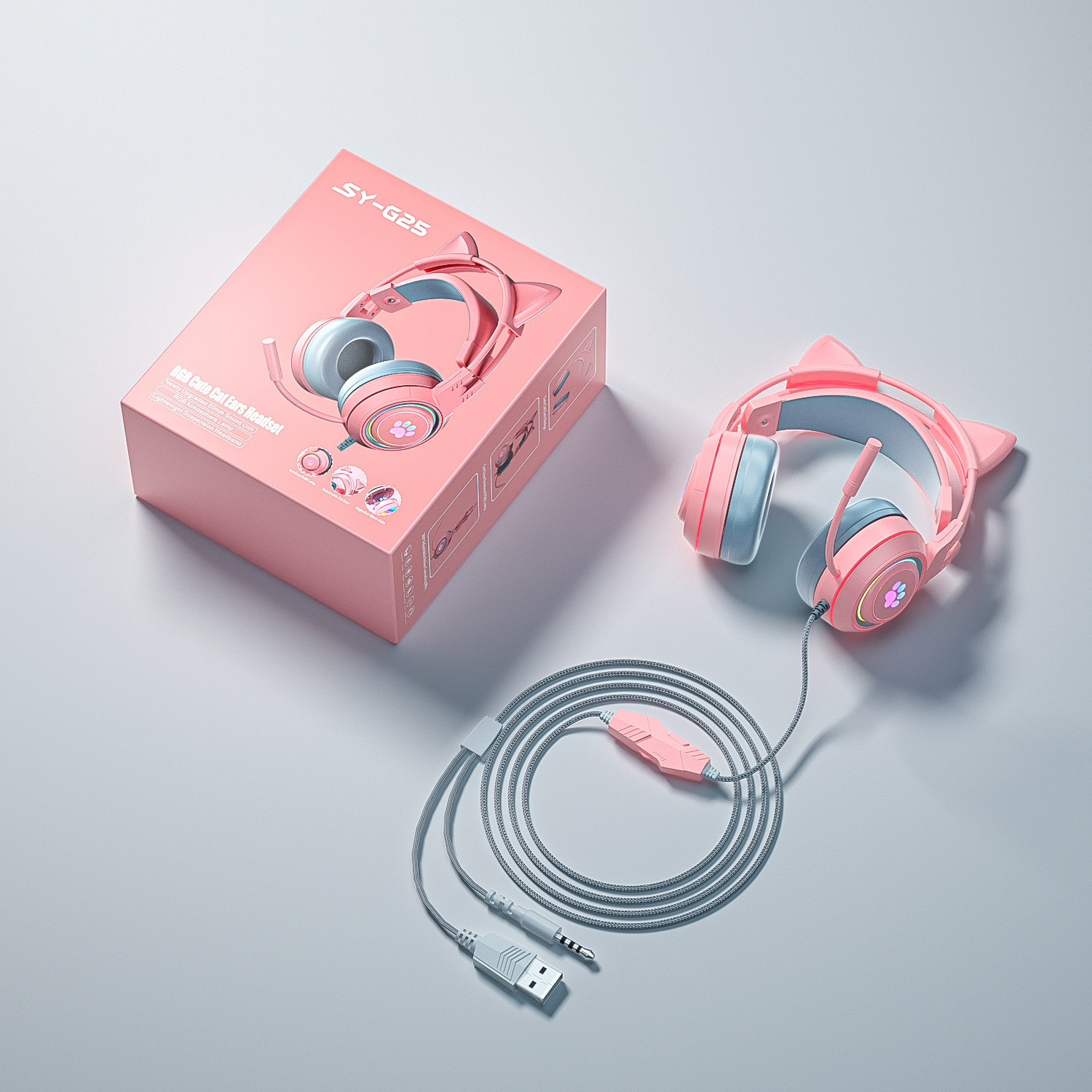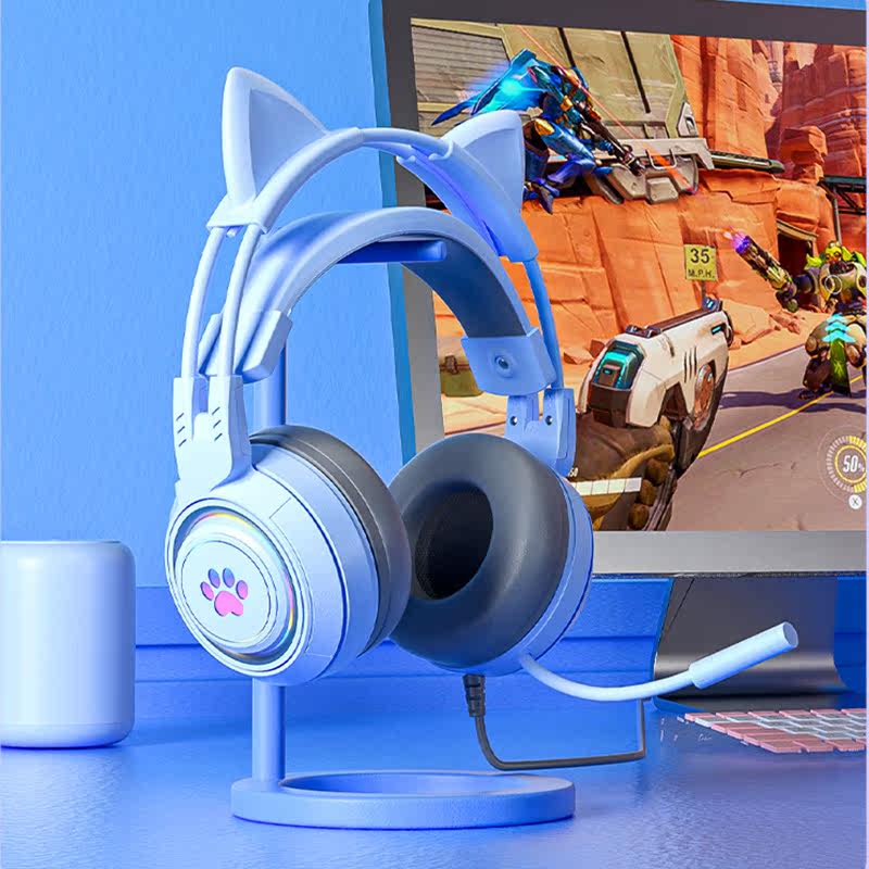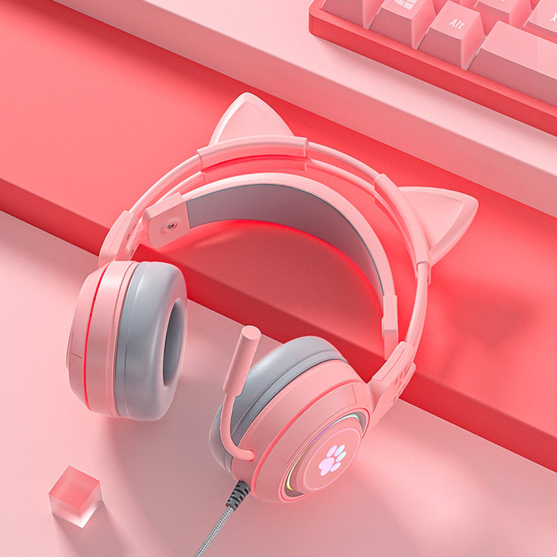 Cute girls detachable cat ears e-sports bass mobile phone computer light-emitting head-mounted game headset with wheat