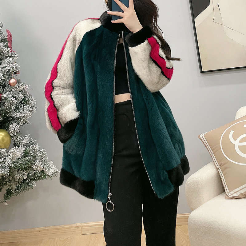Mrs. Leng 2022 new stand-collar contrast color whole mink mink coat female imported velvet young fur coat
