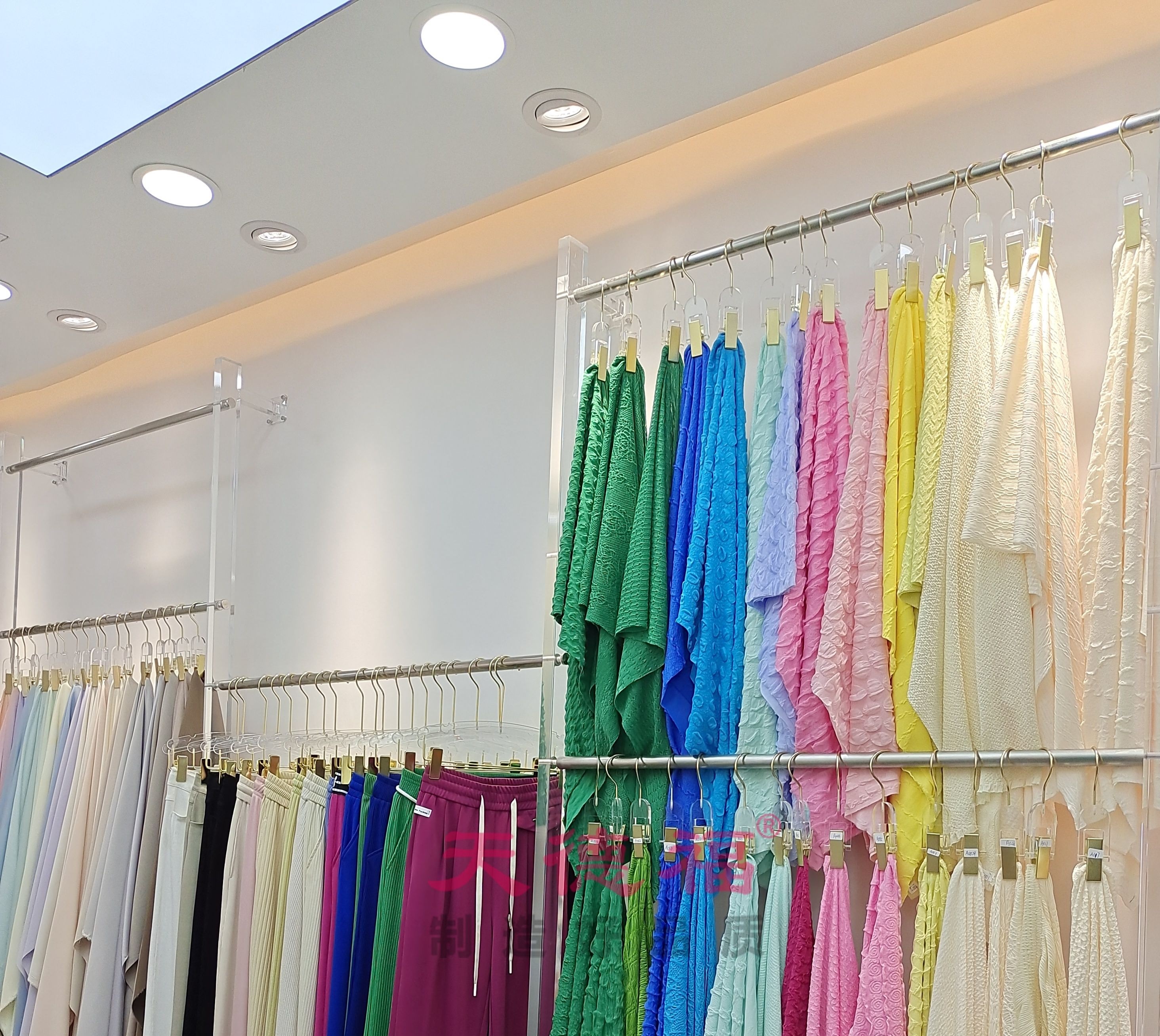 Tiandefu shelf display rack acrylic wall clothing rack fabric rack window display rack