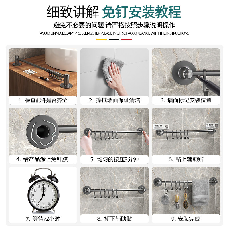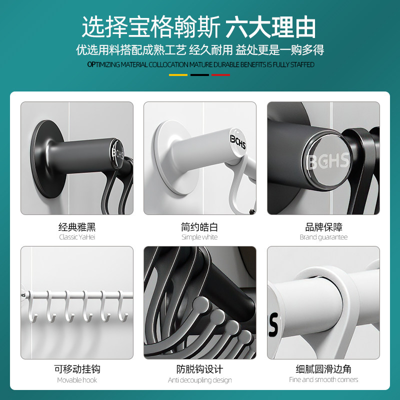 Single rod towel rod hook bathroom with rack towel rack toilet without punching towel rack hanging rod space aluminum