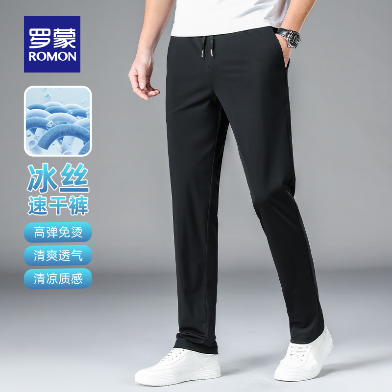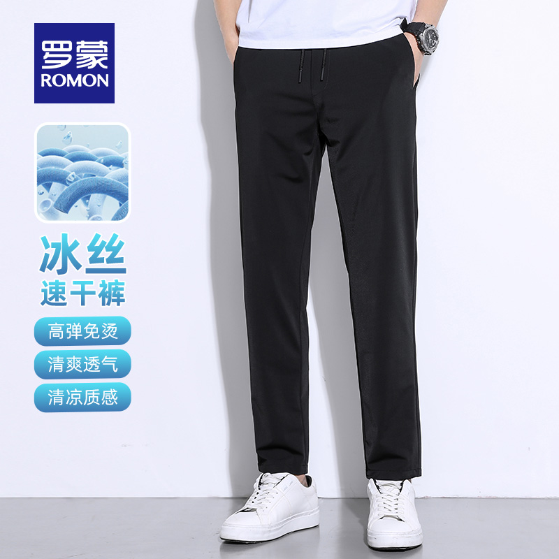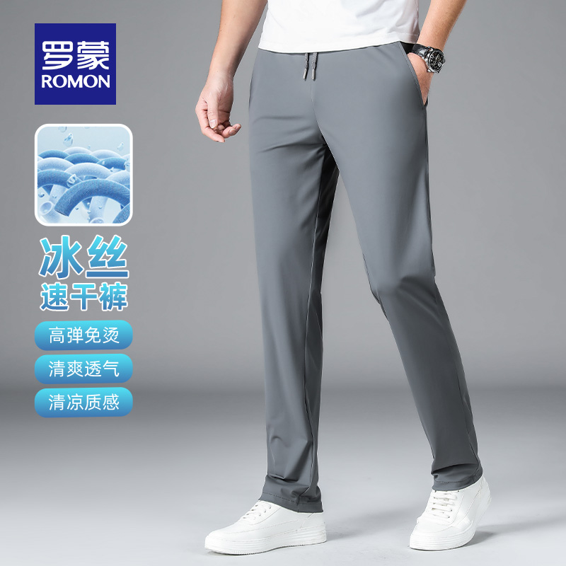 (Ice Silk Speed Dry) Romon Men Straight Barrel Casual Pants 2023 Summer Slim Draw Rope Tightness Air Conditioning Pants Long Pants-Taobao